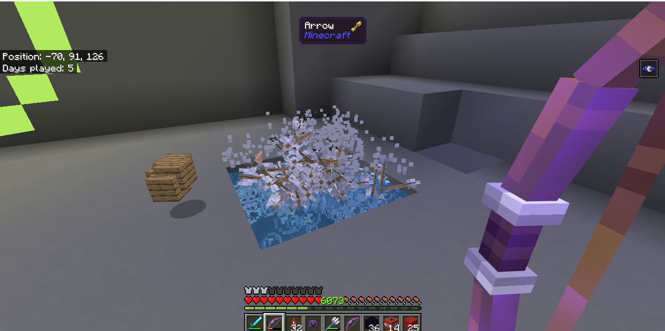 i was just playingwhen i just for fun shot a arrow in the water fountain and the i kept shooting and this happende