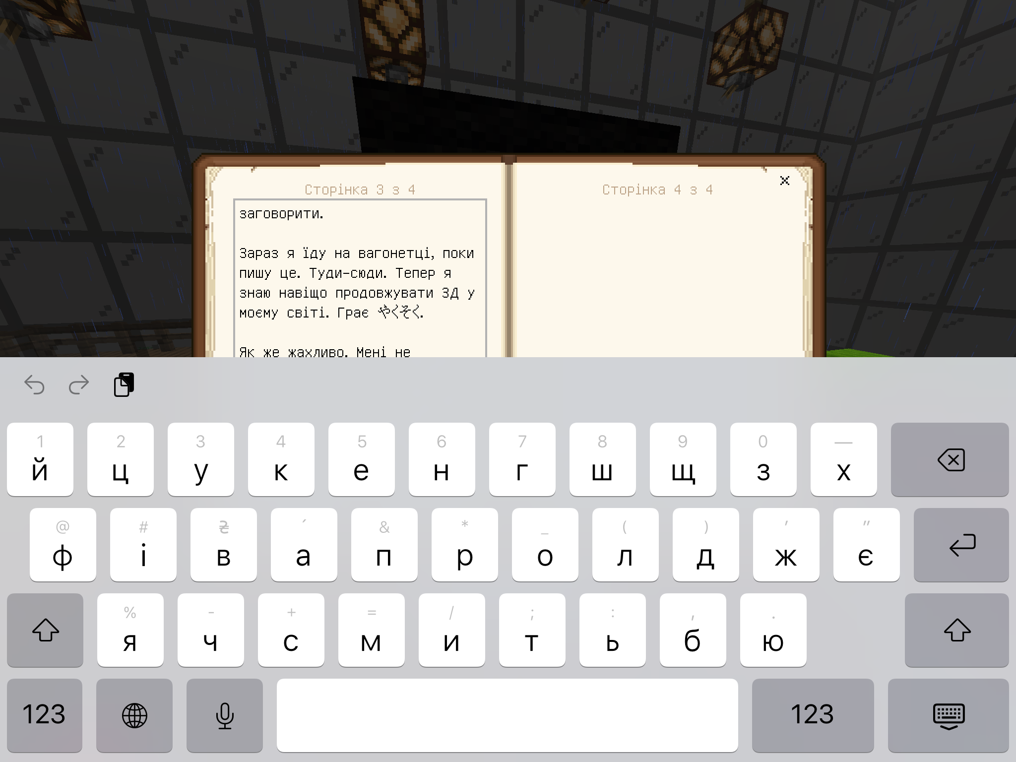 I suggest making it so that the book moves up (or down) when the player moves between lines or starts a new line so that the text that is currently being typed isalways visible.