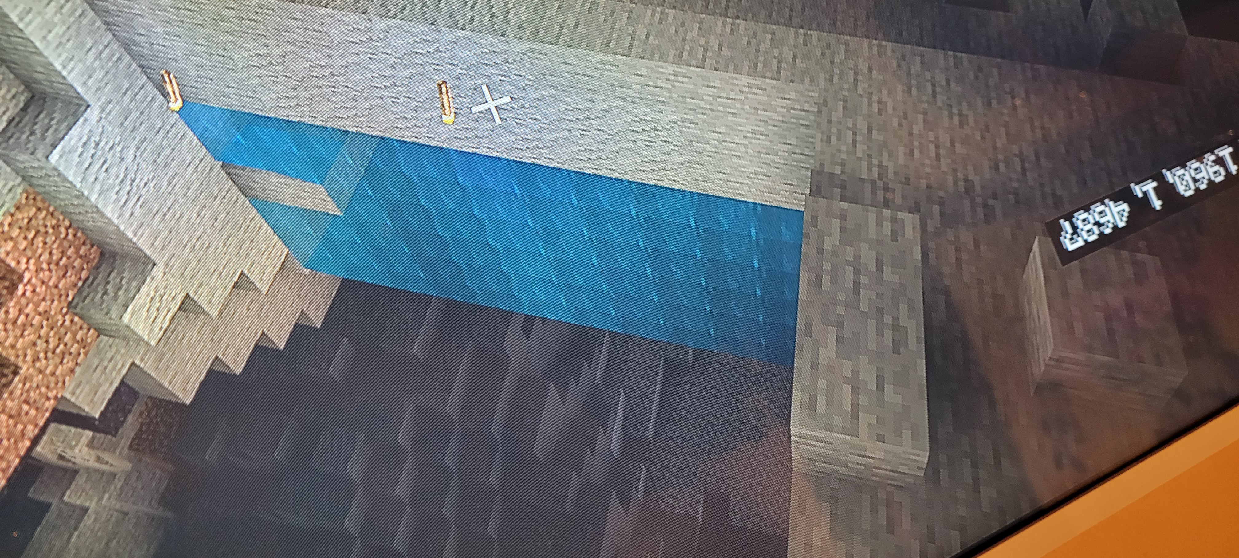 We're seeing glitched water just like above. I've even seen big air pockets inside of water bodies with water sources running down the edge next to air blocks.