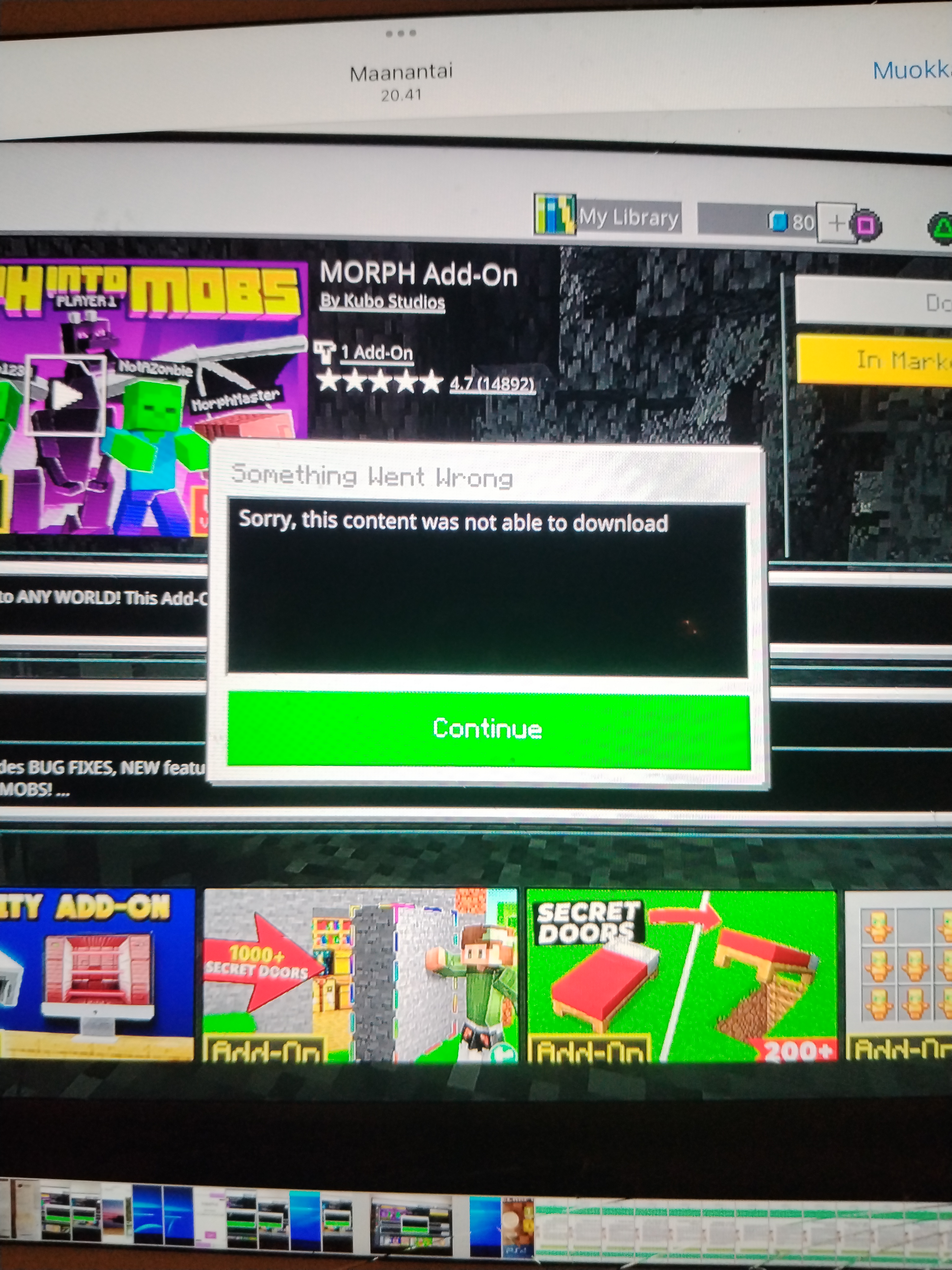 I can't download add-ons. We have enough space PS4 and Minecraft storage. I clear marketplace cache.