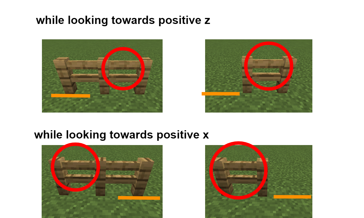 2. place a row of fences and look on the sides that dont face towards positive x or z.
