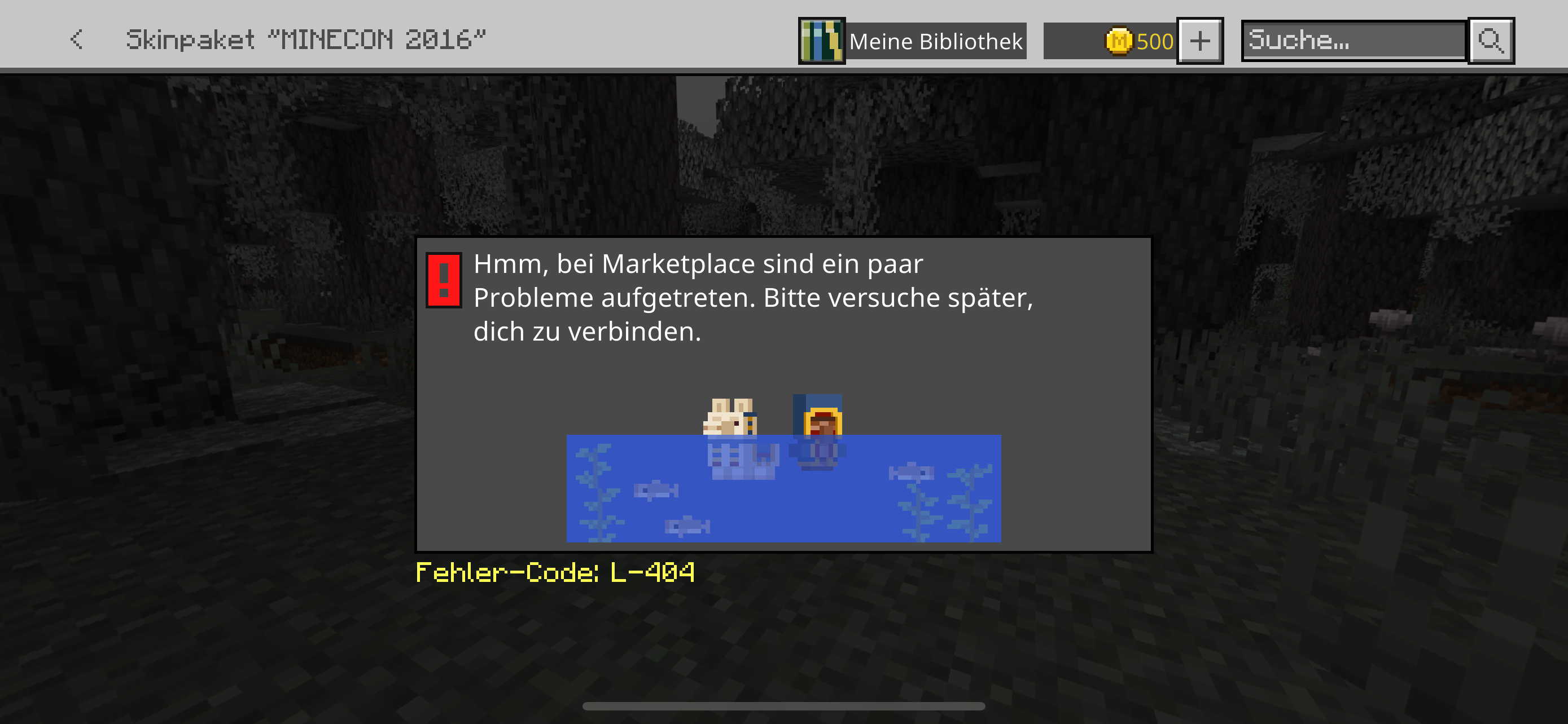 I have a Skin Pack called Minecon 2016 and everytime I try to Open it, an Error appears called L-404. It basically says that I would have to wait, but it doesn't matter how long I wait it doesn't work. I think the skin Pack is bugged bc I can open every other skin pack that I own.