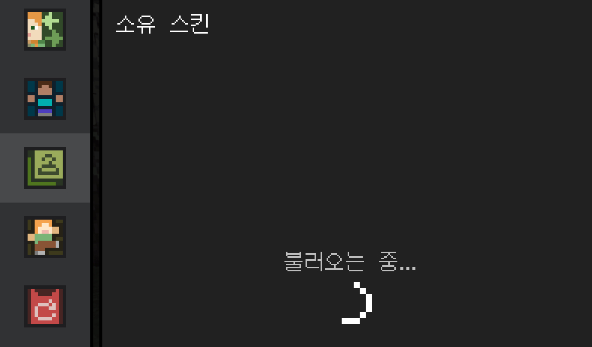 마인크래프트 소유 스킨 창이 무한하게 로딩되고 있다.(인터넷 문제없음)