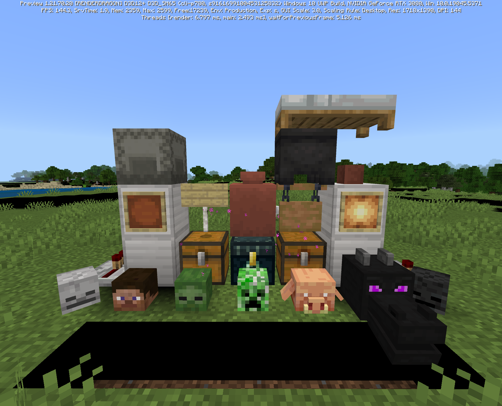 Place a grass block. Notice its sides are darkened by the resource pack.