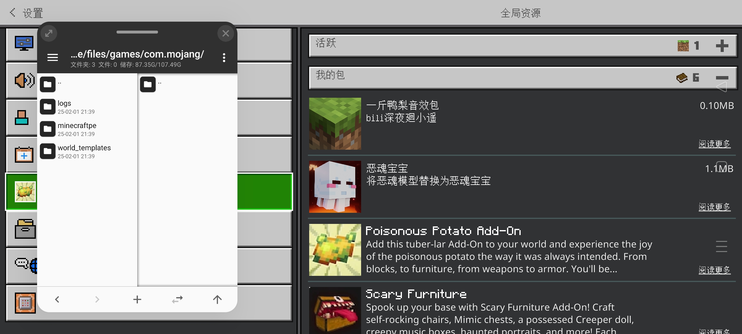 The mods, texture packs, and skin packs imported in the game cannot be found in the file manager (the path stored in the picture is inside the game)