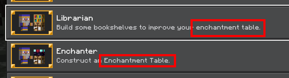 In addition, the name of the Enchanting Table is capitalized in one achievement, but not the other.