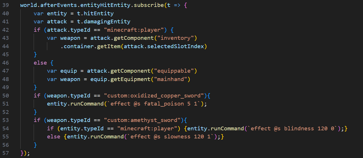 });when you copy the code and successfully set up a pack, apply it to a world, then we can test.