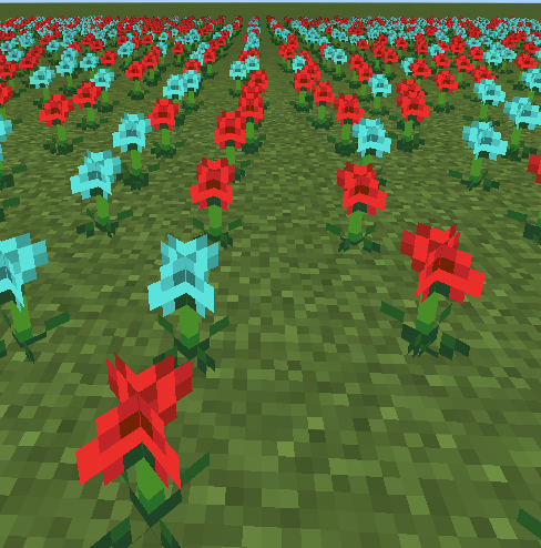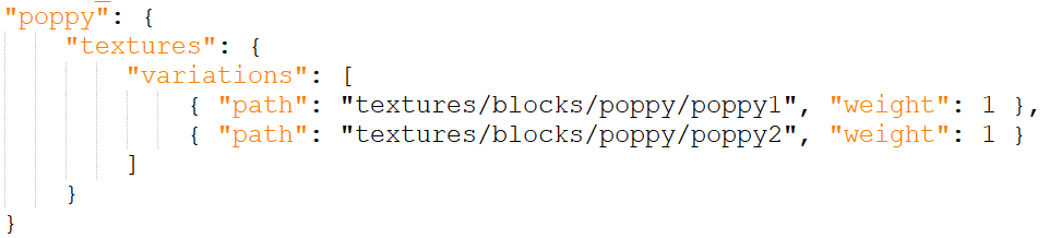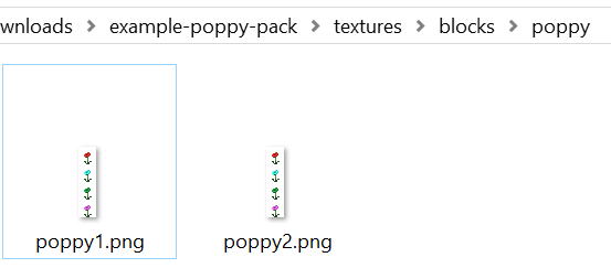 The resource pack includes two variants for poppies. The variants have identical animation frames. This means that we would expect all poppies to look identical if the animations worked correctly.