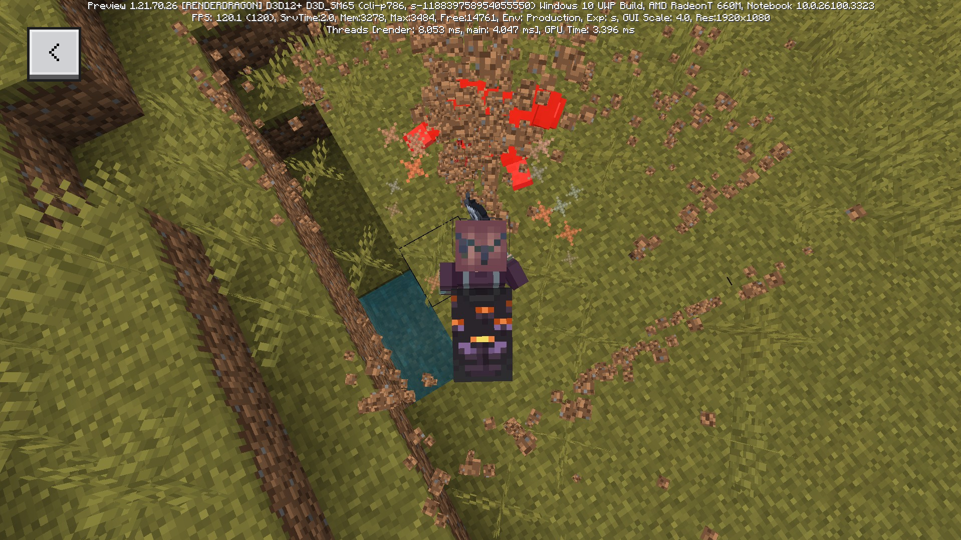 las particulas al usar un ataque aplastante no se muestran de la misma manera en java que en bedrock