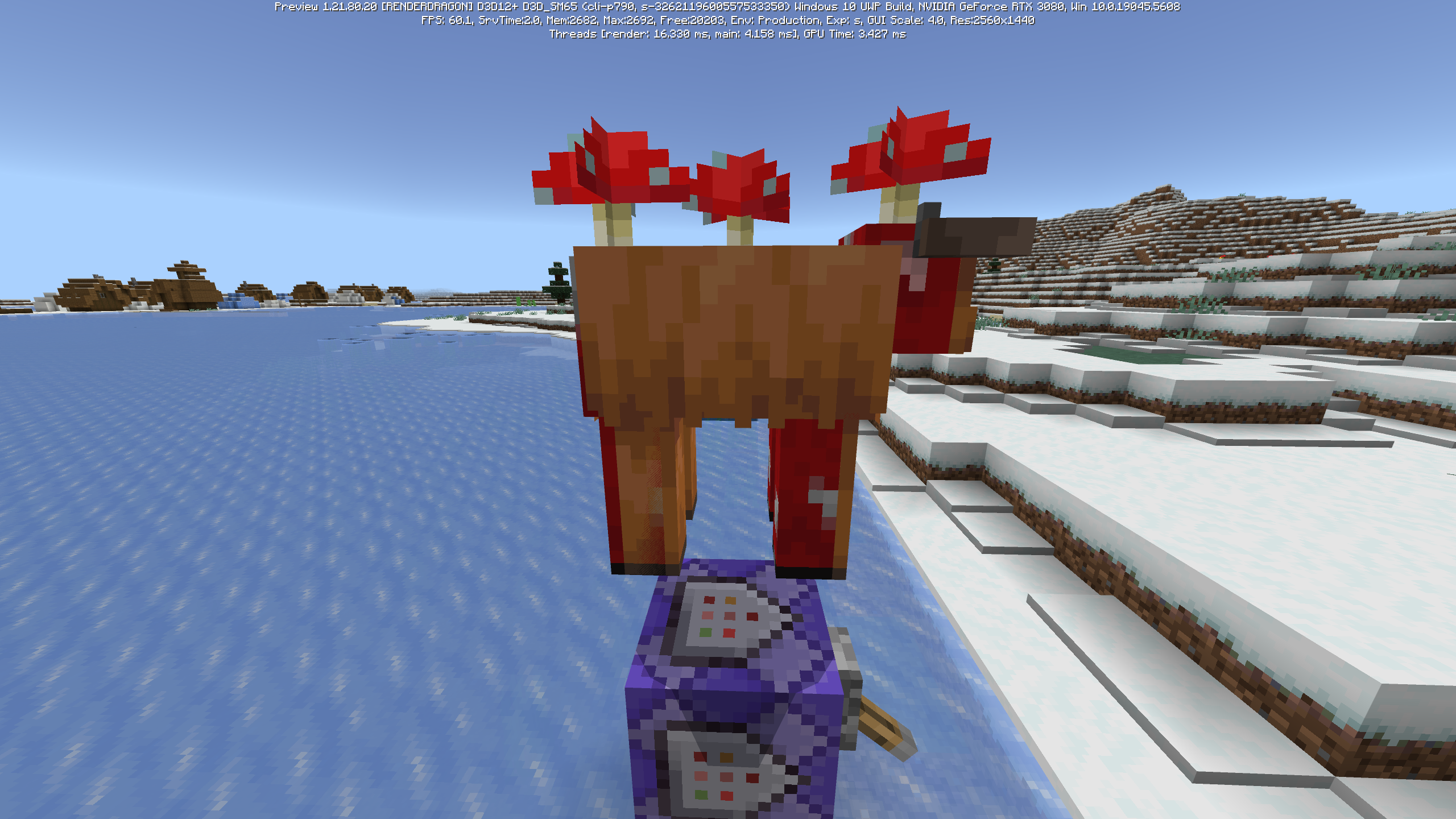Teleporting a mooshroom and cow into the same space demonstrates the issue well, as seen in the cow_mooshroom_misalignment.png screenshot.