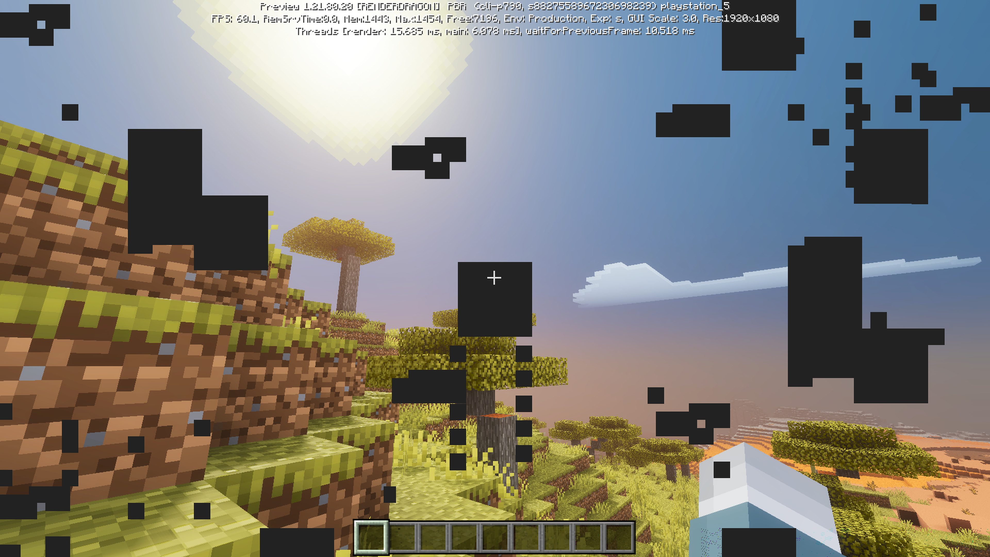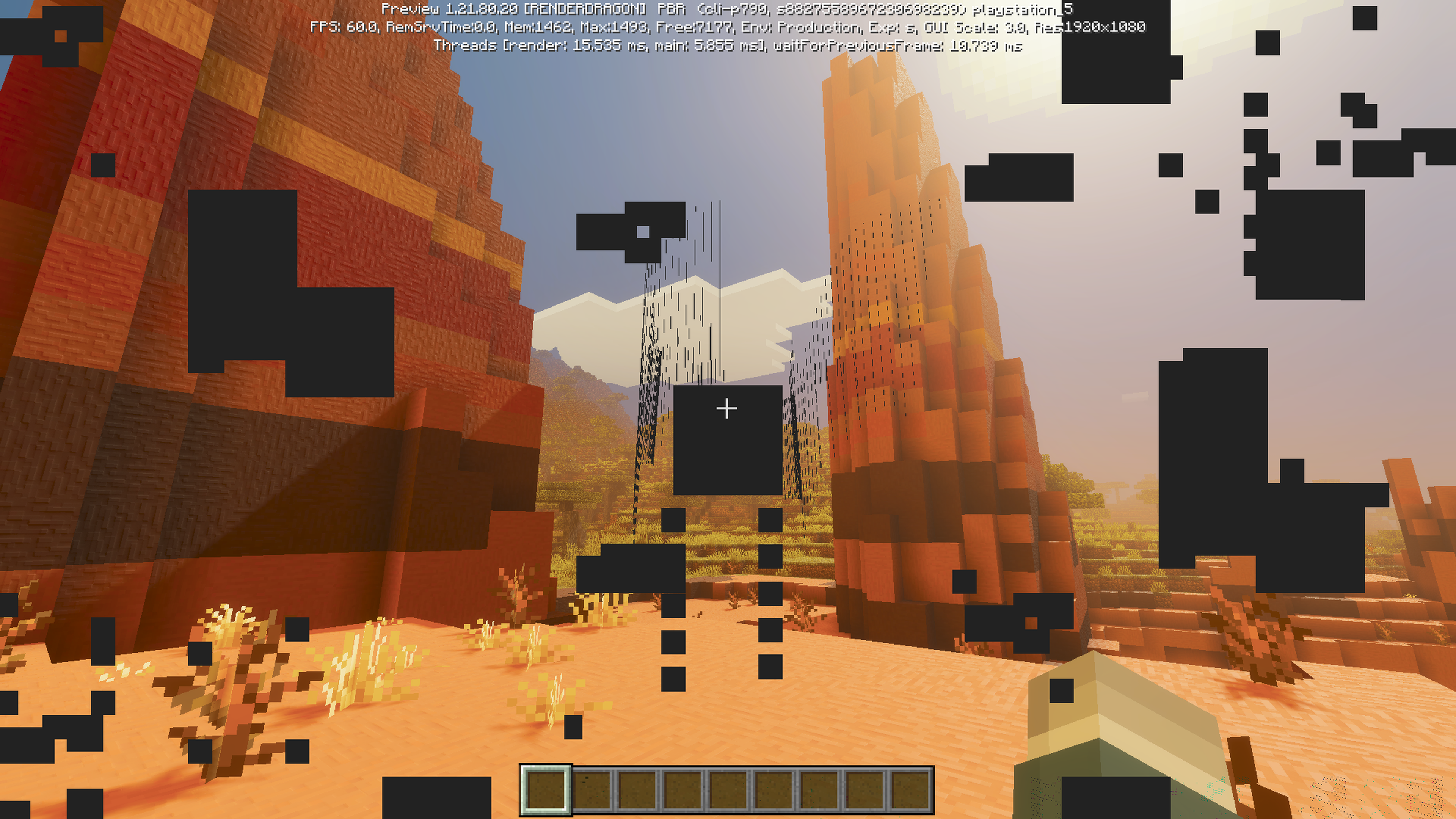 When using all kinds of different resource packs that are capable of deferred rendering, there are black squares and artifacts appearing on the screen. I’ve tried changing the resource pack, and none of them work. It’s easy to replicate, you just have to enable deferred technical preview and it will be there all of the times.