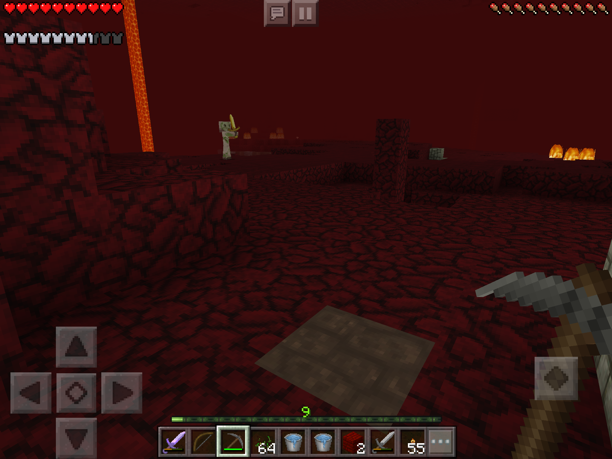 I am creating this as an issue because the vanilla Nether Brick texture was once lightened in MCPE for the same reason – it was too dark to see individual blocks with reasonable brightness settings. In my case, with app brightness maximized and device brightness set to automatic.