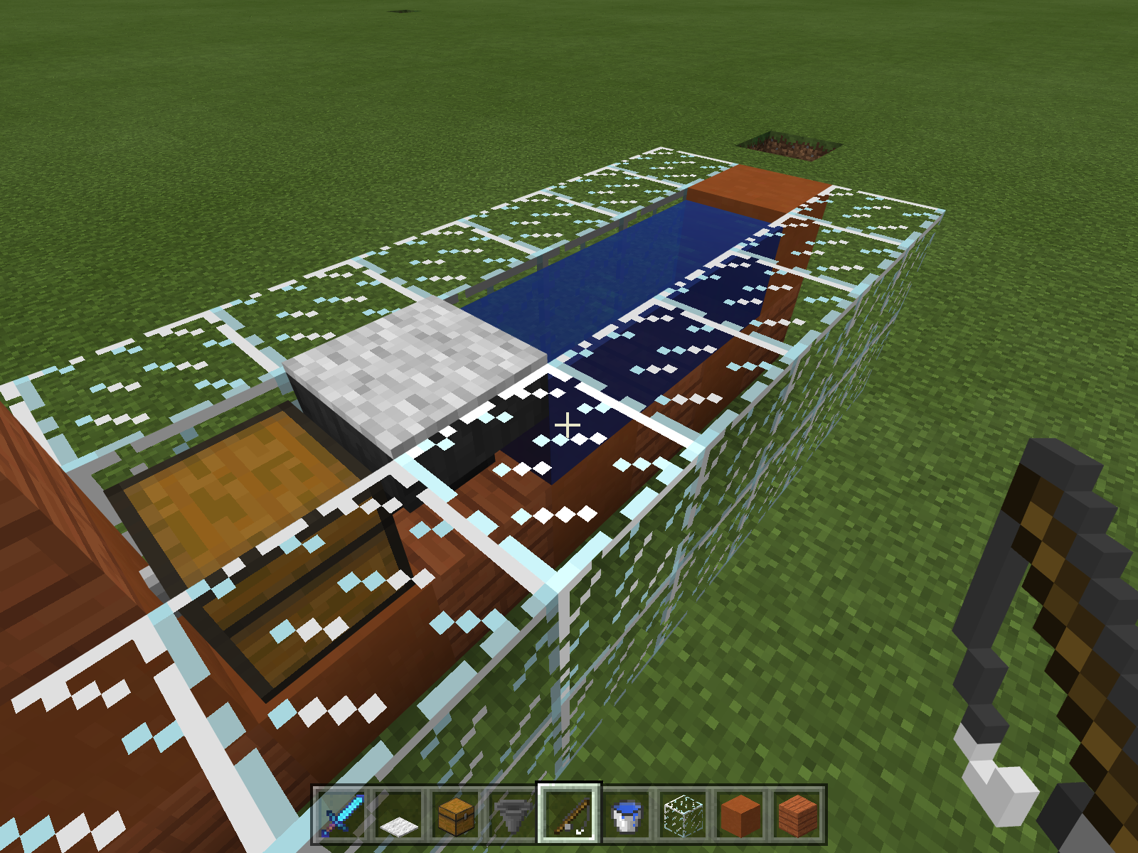 This setup allowed me to collect fishing rewards in the chest without having to move them there myself, by me standing on the top most block, the caught item/fish would get collected by the hopper and sent to the chest.