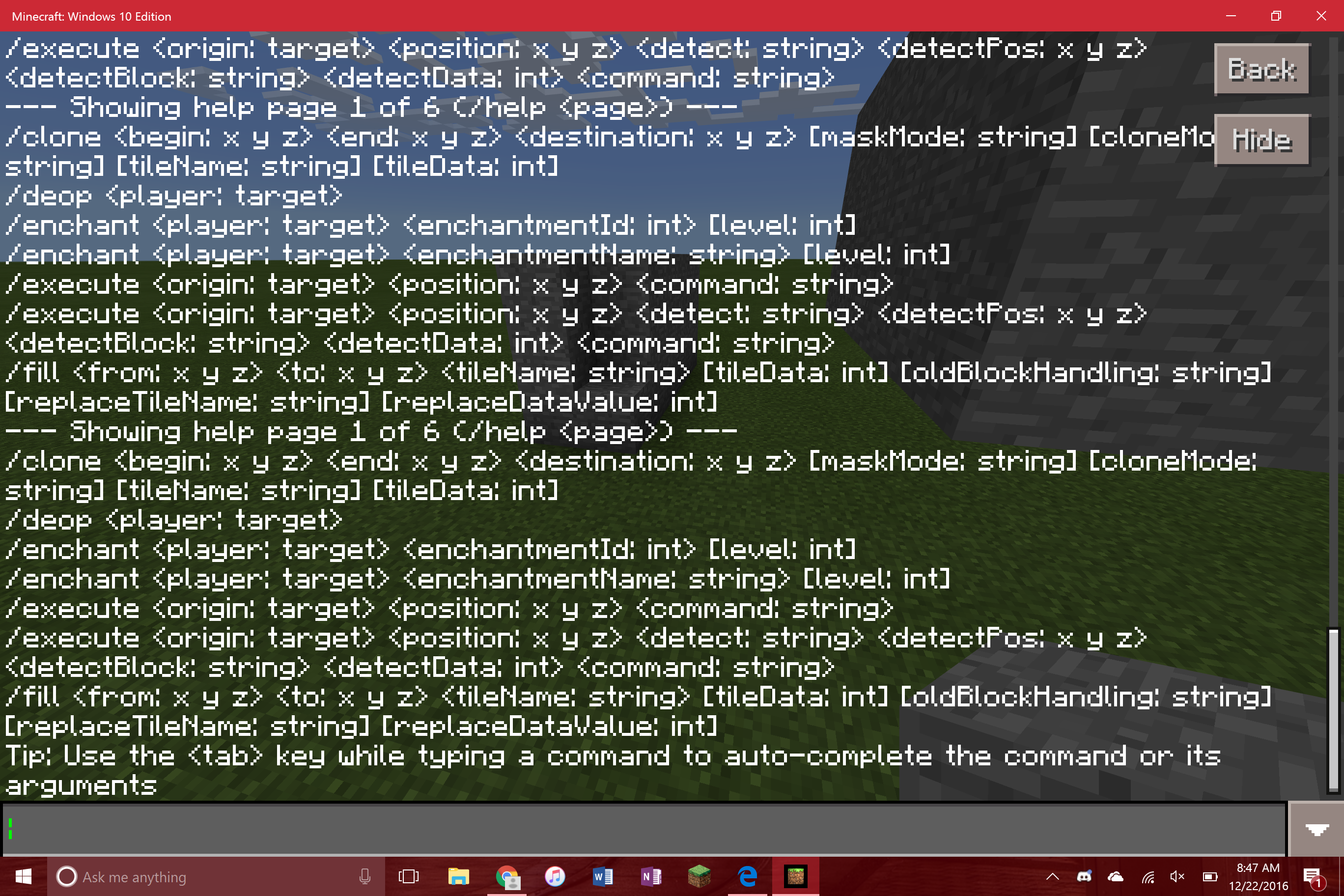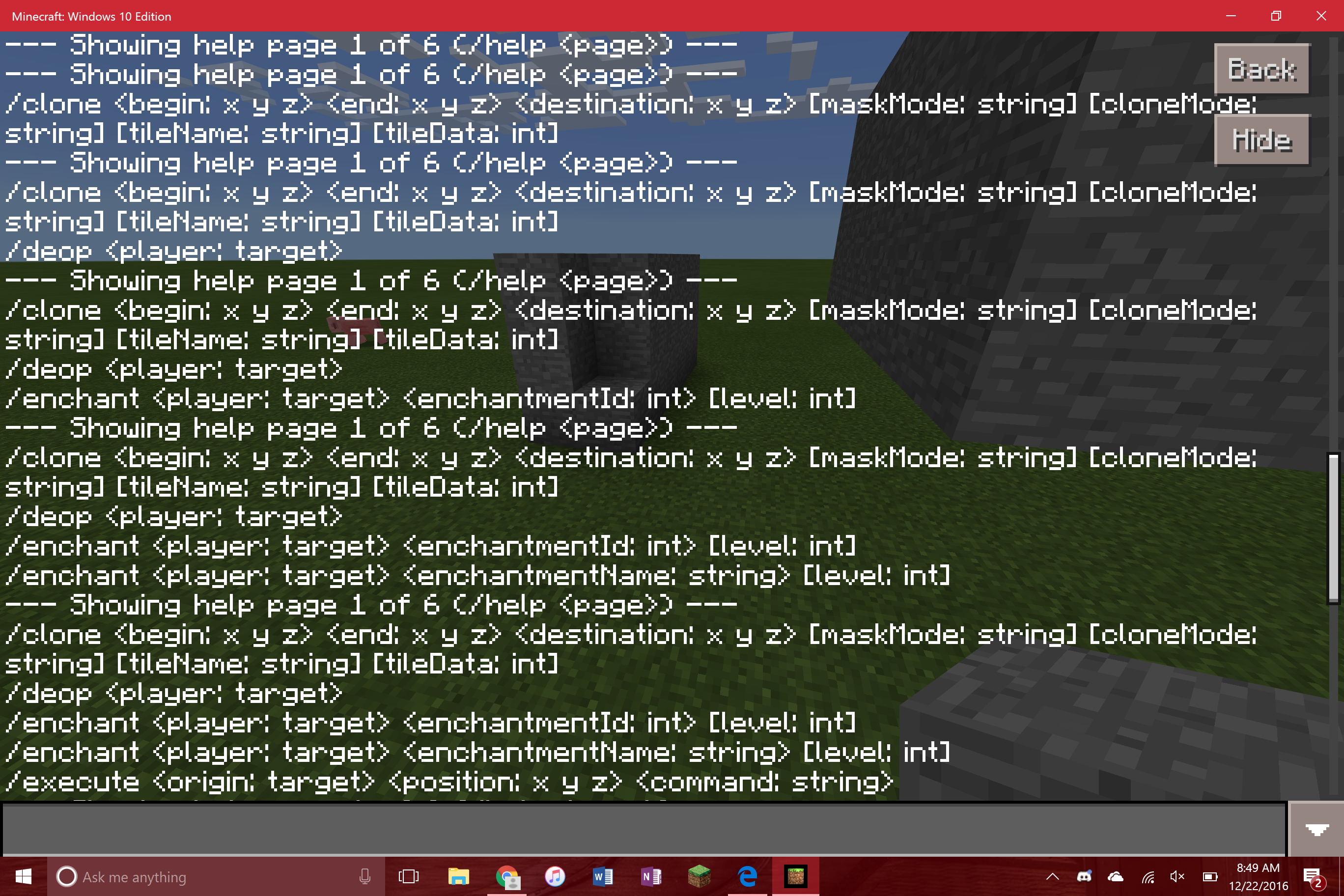 When typing a command that prints multiple lines back, such as /help, it prints it back line by line, but multiple times. Therefore, typing help looks really bad because of how it prints multiple times. This also occurs with 3rd party commands from servers. The screenshots probably do a better job explaining.