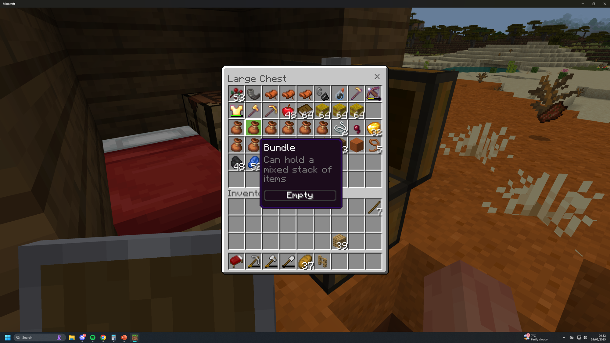 I was casually playing survival, moving stuff in my double chest which had ~8 bundles in it. A creeper came behind and blew up half the double chest. i replaced the double chest from the drop, and then opened it, to find all the bundles were now empty. Absolutely fuming and a very critical bug. unable to reproduce in creative world, needs more testing.