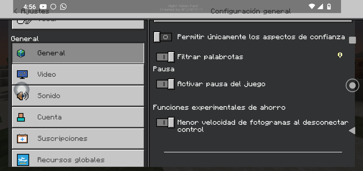 4. Go to the general settings. Once you do this, the option to pause the game disappears and becomes disabled.