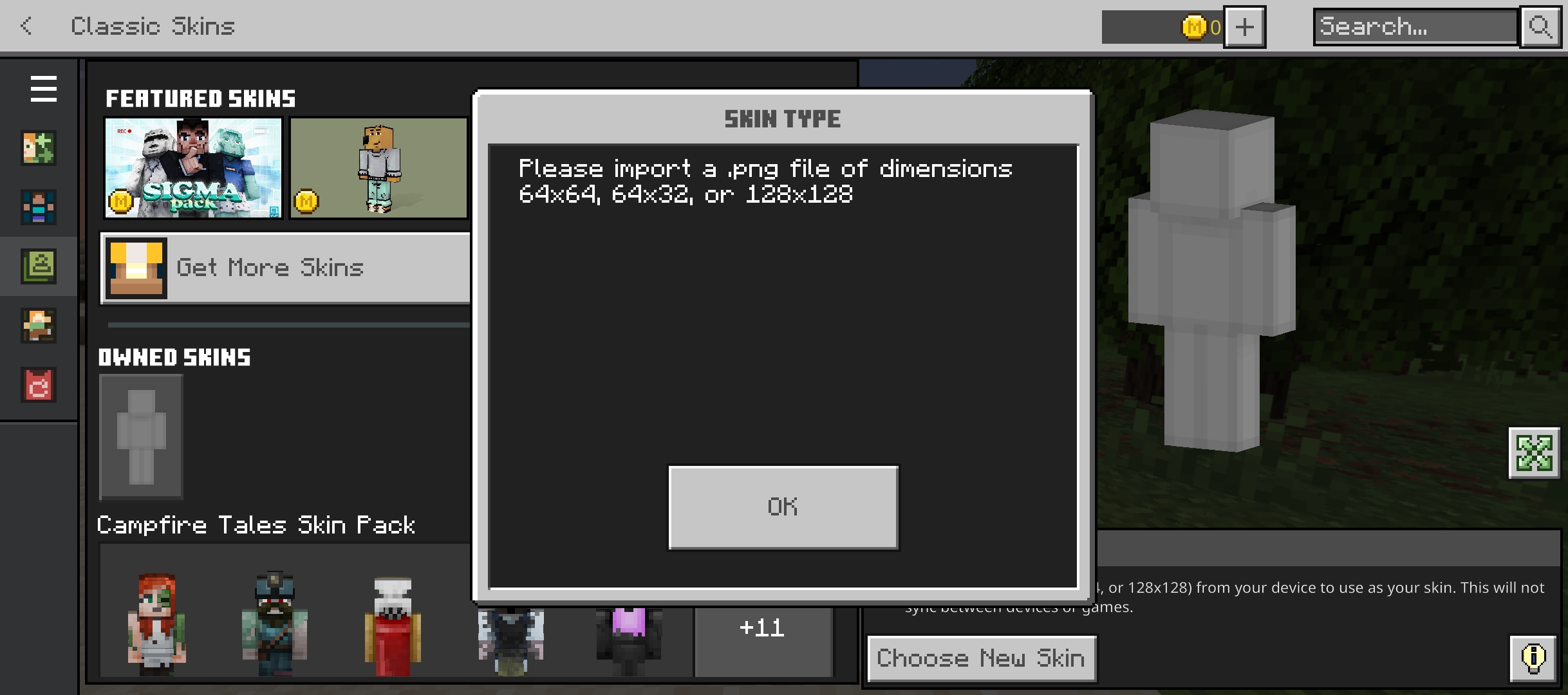 Cannot import my 64 * 64 .png minecraft skins, it says my images is not a .png file of dimensions 64x64, 64x32, 128x128