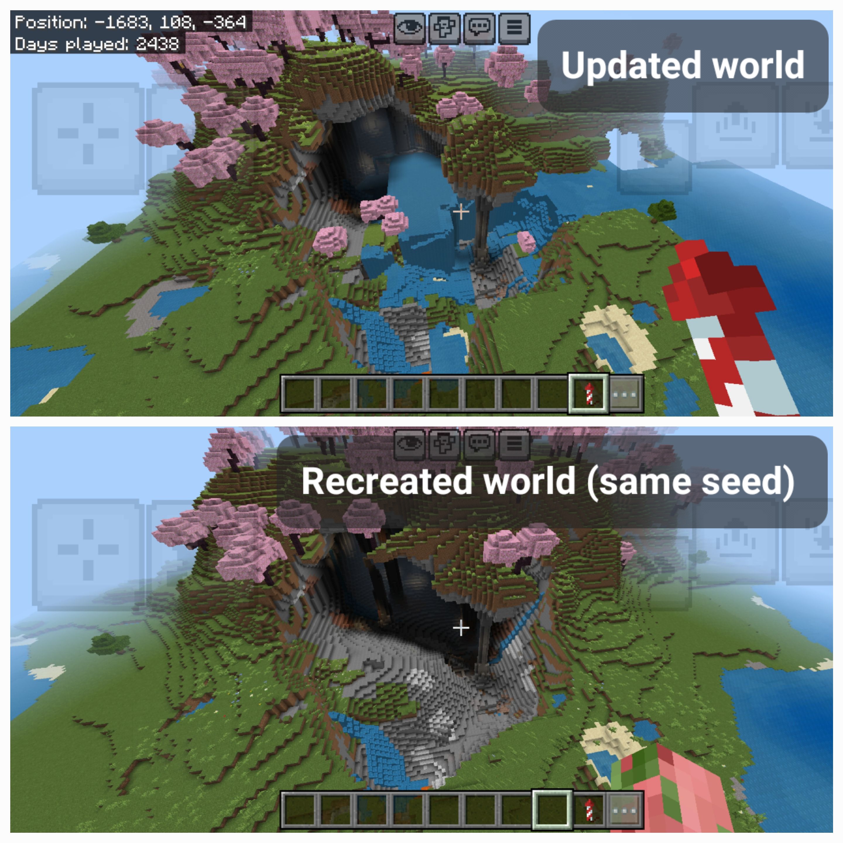 When updating to the new 1.21.70, I noticed that some specific new chunks are broken. Chunks of ocean simply missing, water floating on the edge of chunks, ice biome completely mixed with other ice biomes, etc. It seems to happen mostly where there is water.