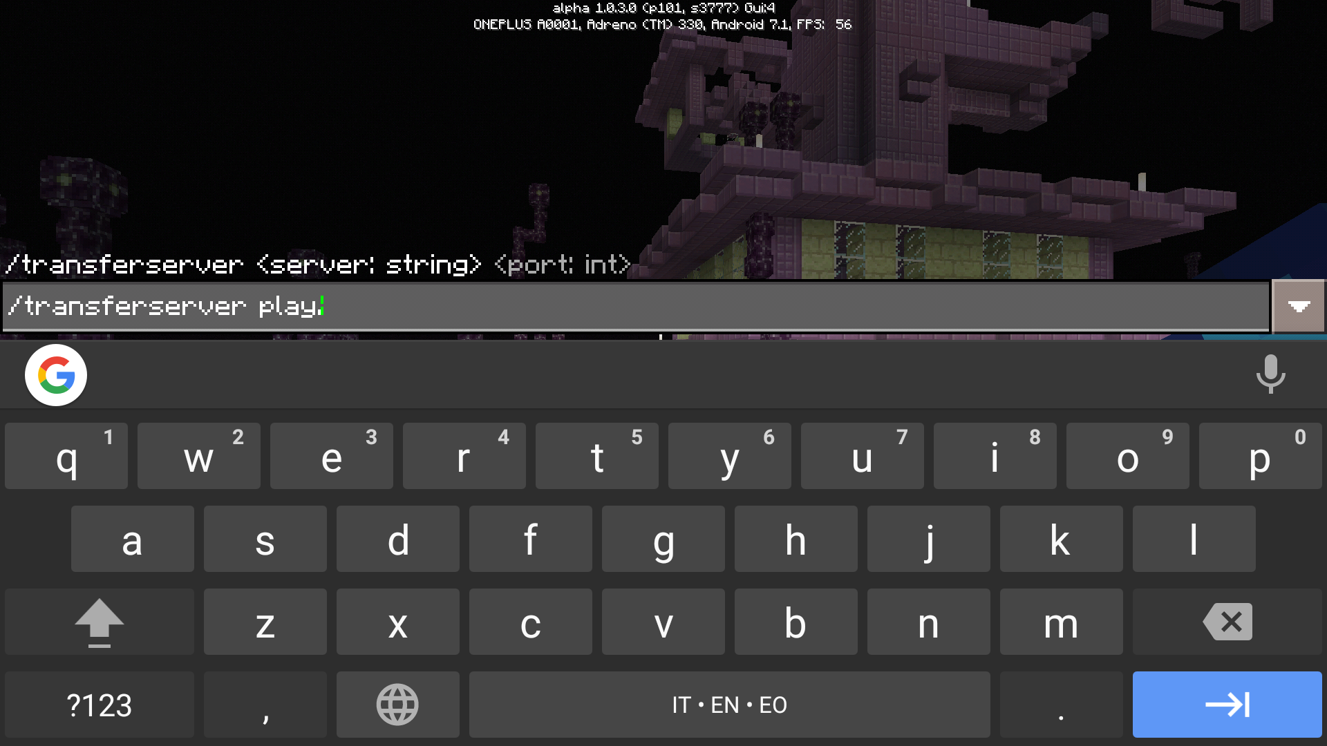 For example, using command "transferserver", which arguments are server of type string and port of type int, you can write the address as "example.com" but you can't write it as a numeric address, like "192.168.5.1".