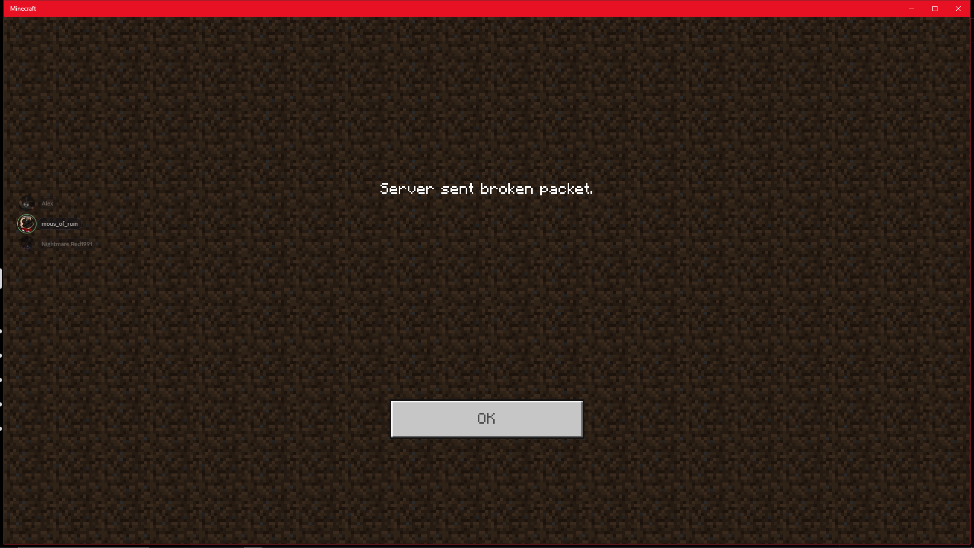 Since yesterday, I’ve been unable to join any world/realm/server due to an error that states “Server sent broken packet.“ I am still able to download marketplace packs and even redeem character parts. I would love to know why and how this is happening.