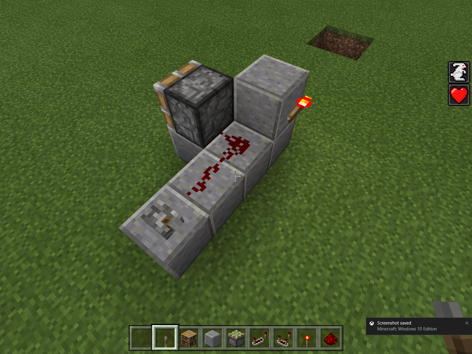 See the screenshots. The torch should not turn off when the lever is turned on, as the dust only points to the mechanism (sticky piston) near it.