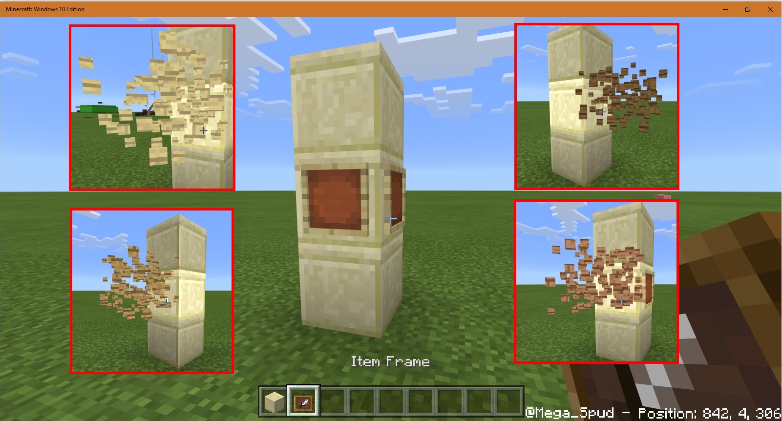 Item Frames show different coloured wood particles when broken, depending on their orientation.