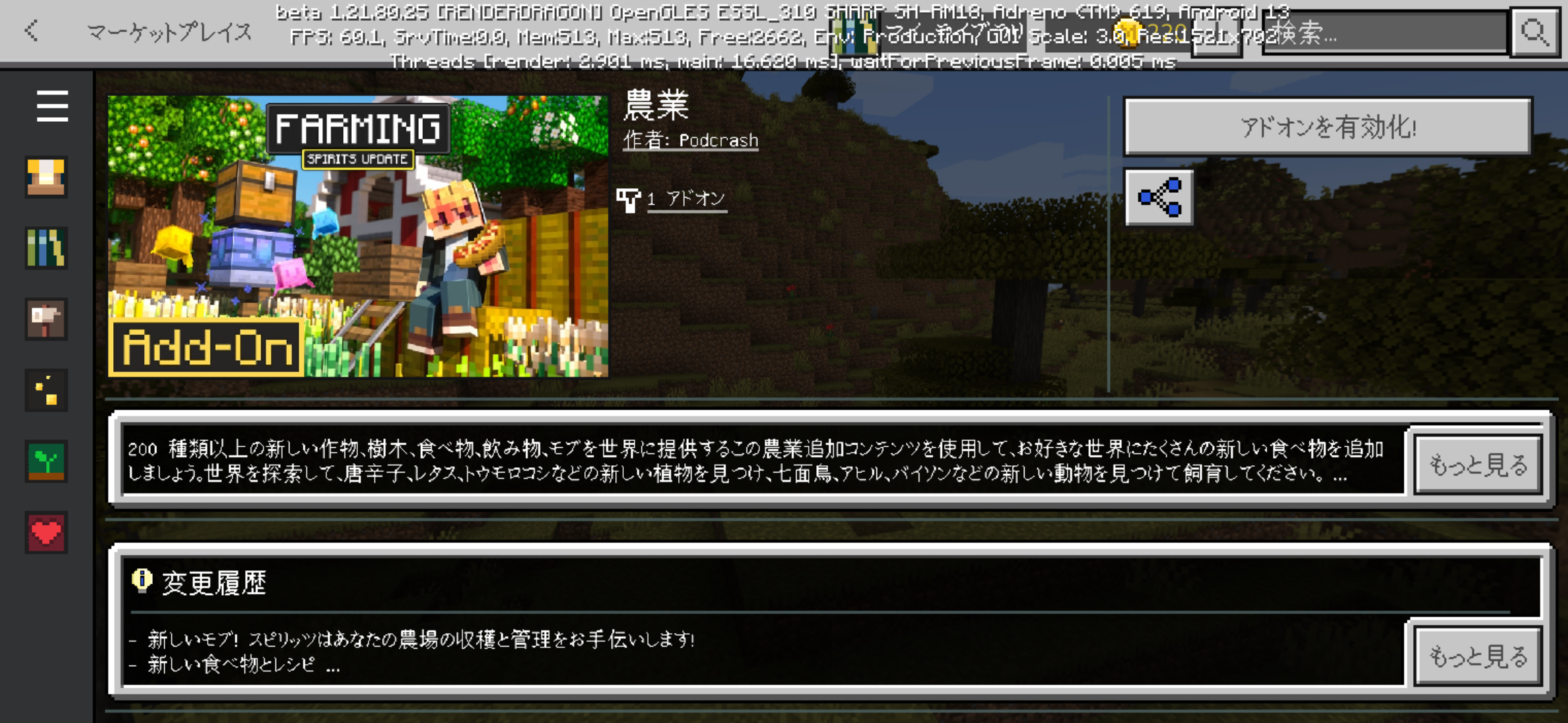 言語の関係で伝わるか分かりませんが、私の端末では画像のaddonを入れた場合に報告されたバグと同様の症状が出ています。addonを入れていない場合は症状は出ませんでした。端末はAndroidのスマートフォンでバージョンはベータ版の最新バージョンです。アイテム欄やインベントリでは表示されませんが、ブロックやアイテムとして設置すれば見える状態です。