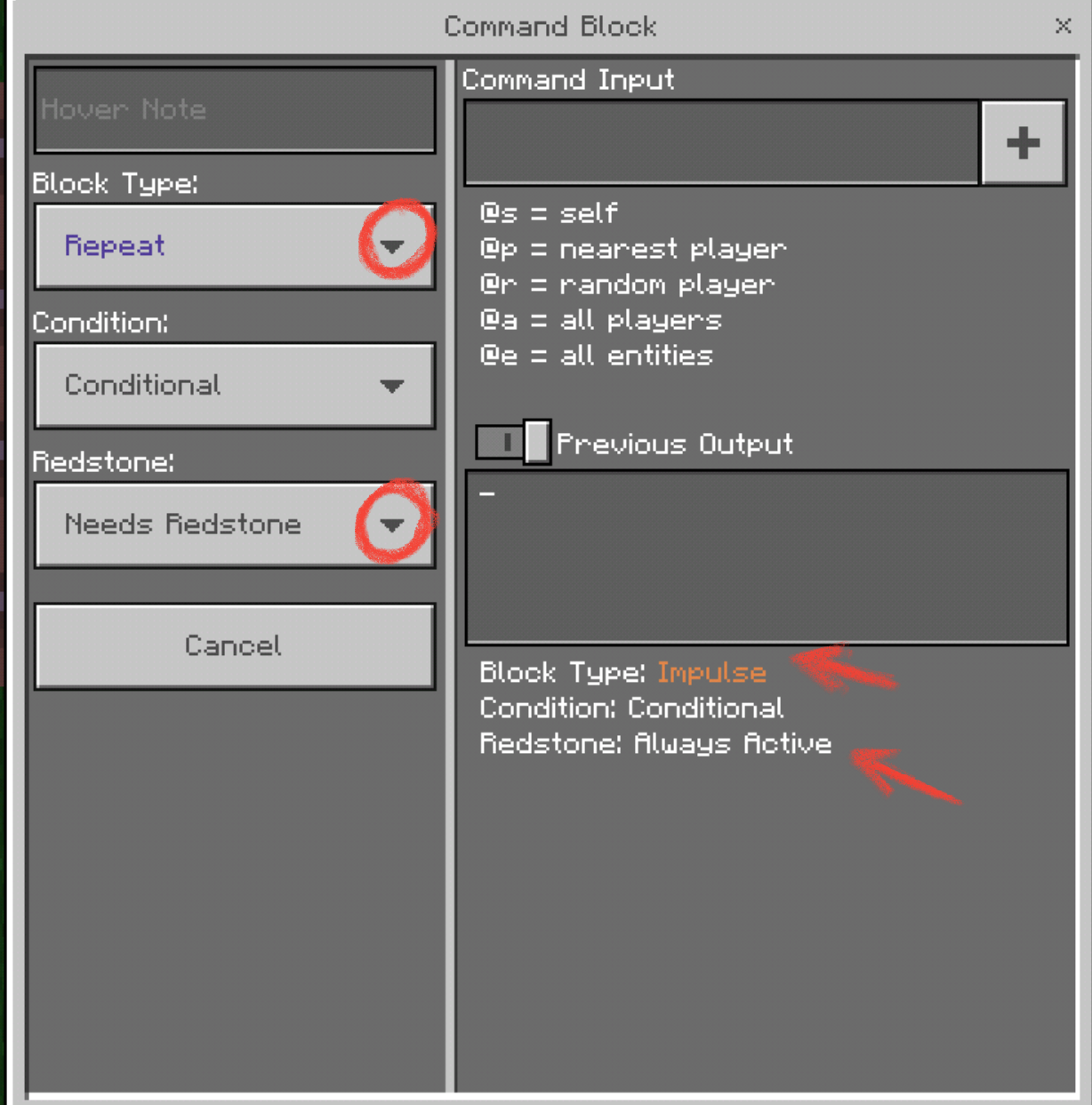 On the command block on the bottom it is written mostly the wrong description.like on the image there is a repeating command block but on the description its written a impulse command block.