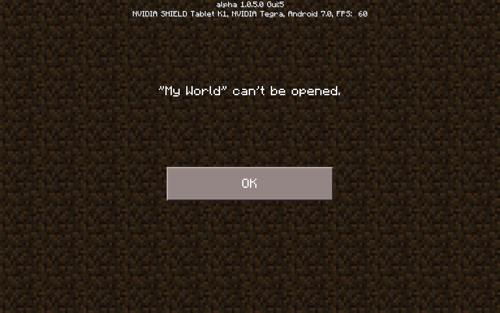 Cant seem to make a new world. My device is a nvidia shield tablet k1