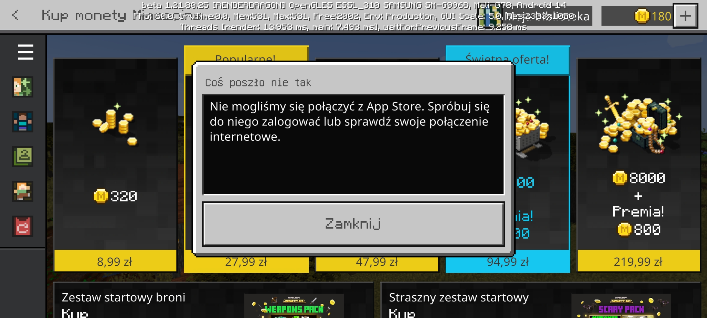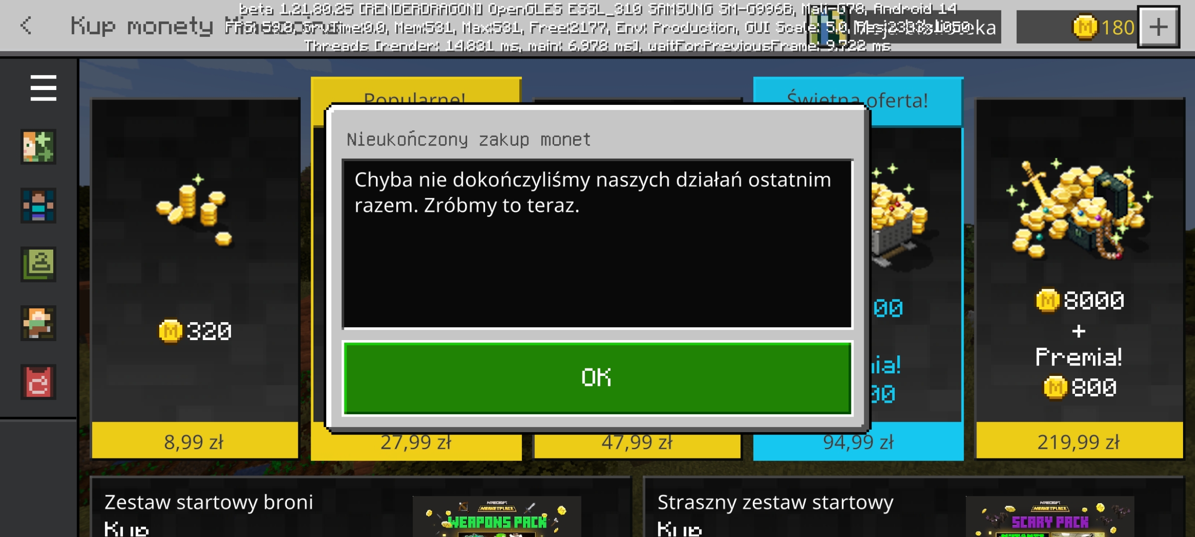 Nie dawno kupiłem coiny w minecrafcie na telefon, i wszystko poszło, dostałem coiny i zapłaciłem ale od wtedy wyświetla mi się że nie dokończyliśmy i że z app store a mam androida itp.