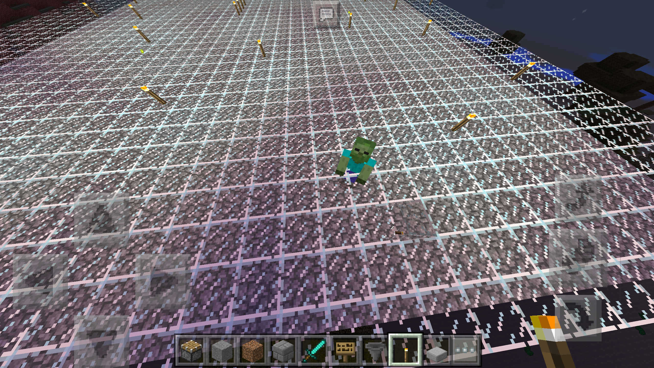 I put a platform of glass 42×42 and for below of glass there is a another platform of cobblestone, the mobs spawn in this area crossing the cristal.
