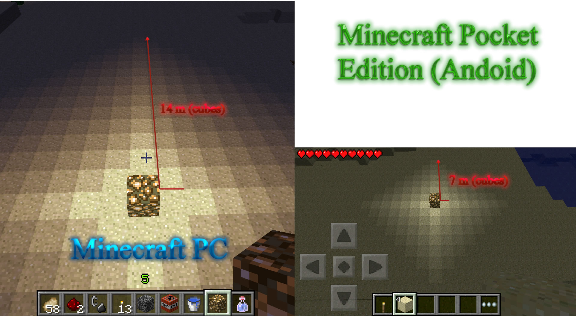 On MCPE the light of the glowstone and torches is reduced by half relative to the PC version ! (with smooth lightning off and brightness: mooby)