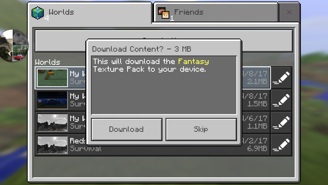 I am playing MCPE on my HTC Adreno ( HTCD660LVWPP, Adreno (TM) 304) Android 6.0.1 and am seeing that the Fantasy texture pack does not remain downloaded or is not recognized by the game as being downloaded after I have played with the texture pack more than once. See screenshot. I do not know where to find the folder for the texture pack or I would see if it was there and downloaded as it should be or I would and screenshot that as well. I have noticed this on both versions recently. 1.0.6.0 and the current version. I don't own any other texture packs at this point to test this out to be true but this does relate to another Issue that I have seen .