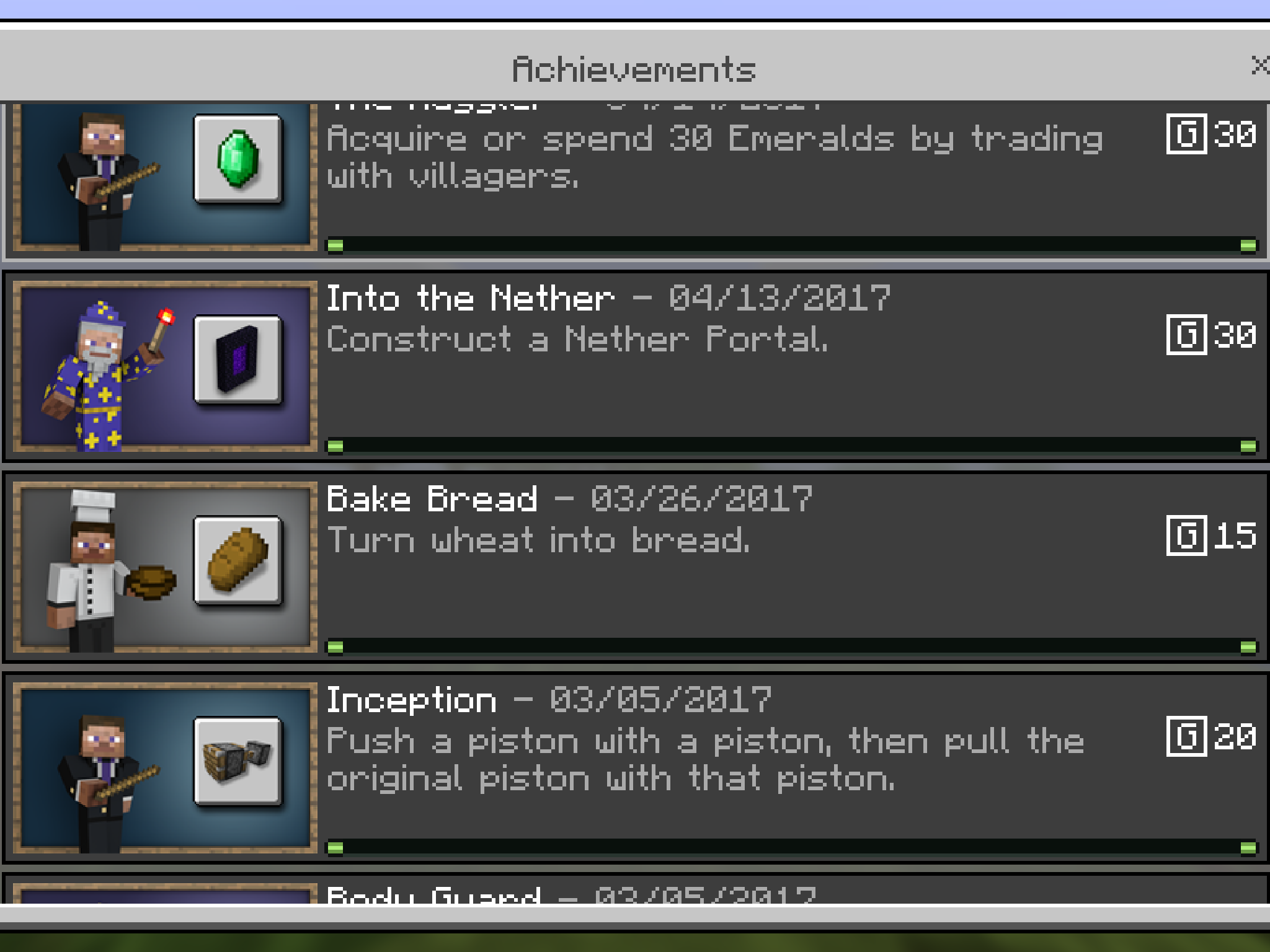 The achievements are colored that you have completed them but the "Xp bar" is only green for the first couple of pixels