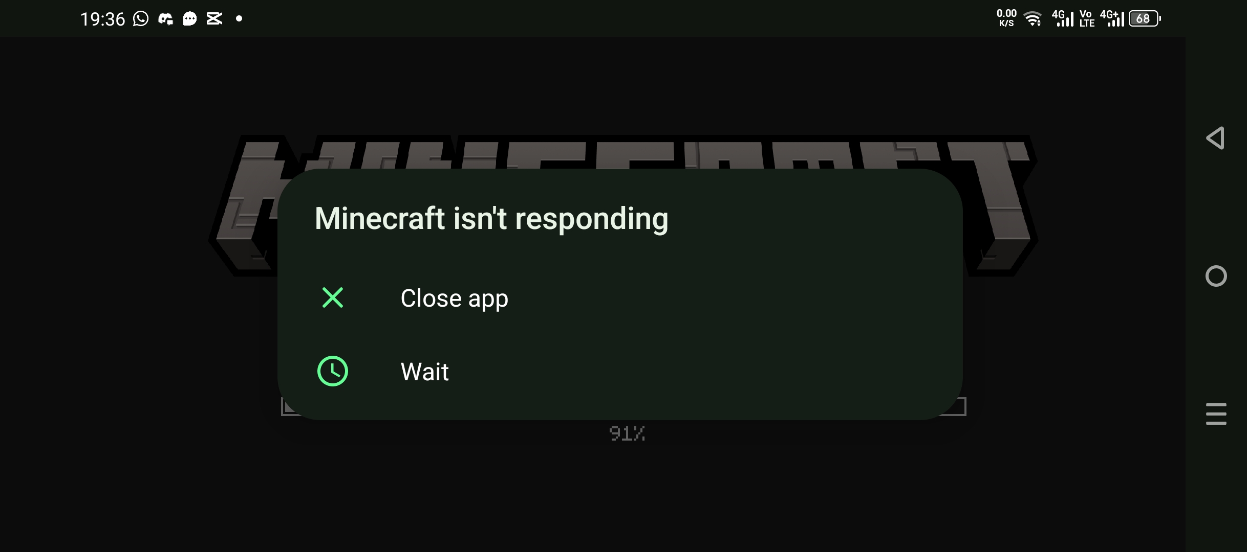 After Mojang logo, the screen turns black for a while, then loading starts. It stops at 55% for a long time, then resumes and gets stuck again at 90%. Once it reaches the main menu, the game freezes and becomes unresponsive within seconds. This happens both with and without an internet connection.