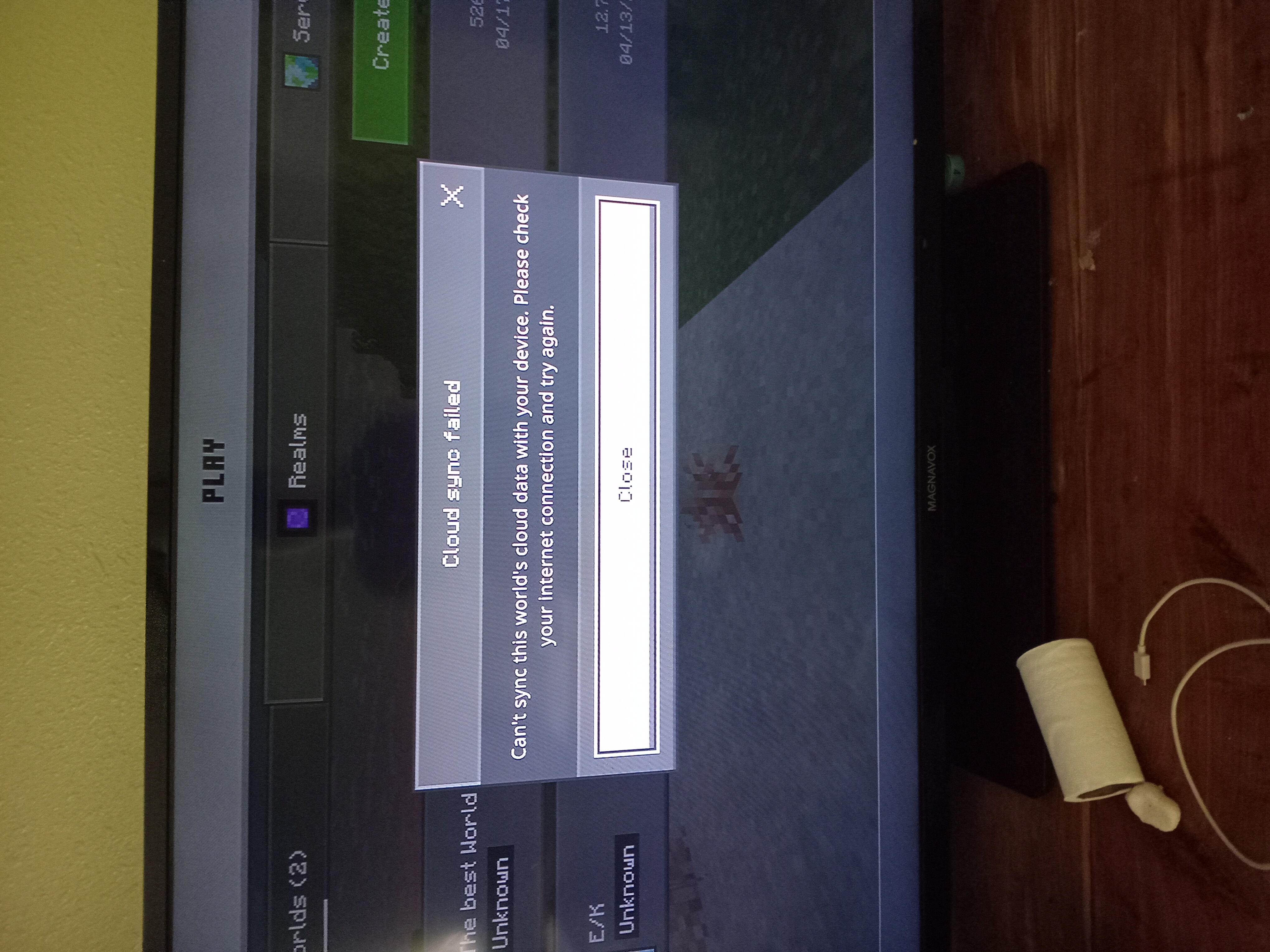 I thank it started doing this when I started to played split screen with my brother and it started to glitch and I have restarted it and Factory restarted it to but it does nothing it won't let me load in my world all it will say is “Can't sync world’s cloud data with your device please check your internet connection and try again” and I have but it does nothing.