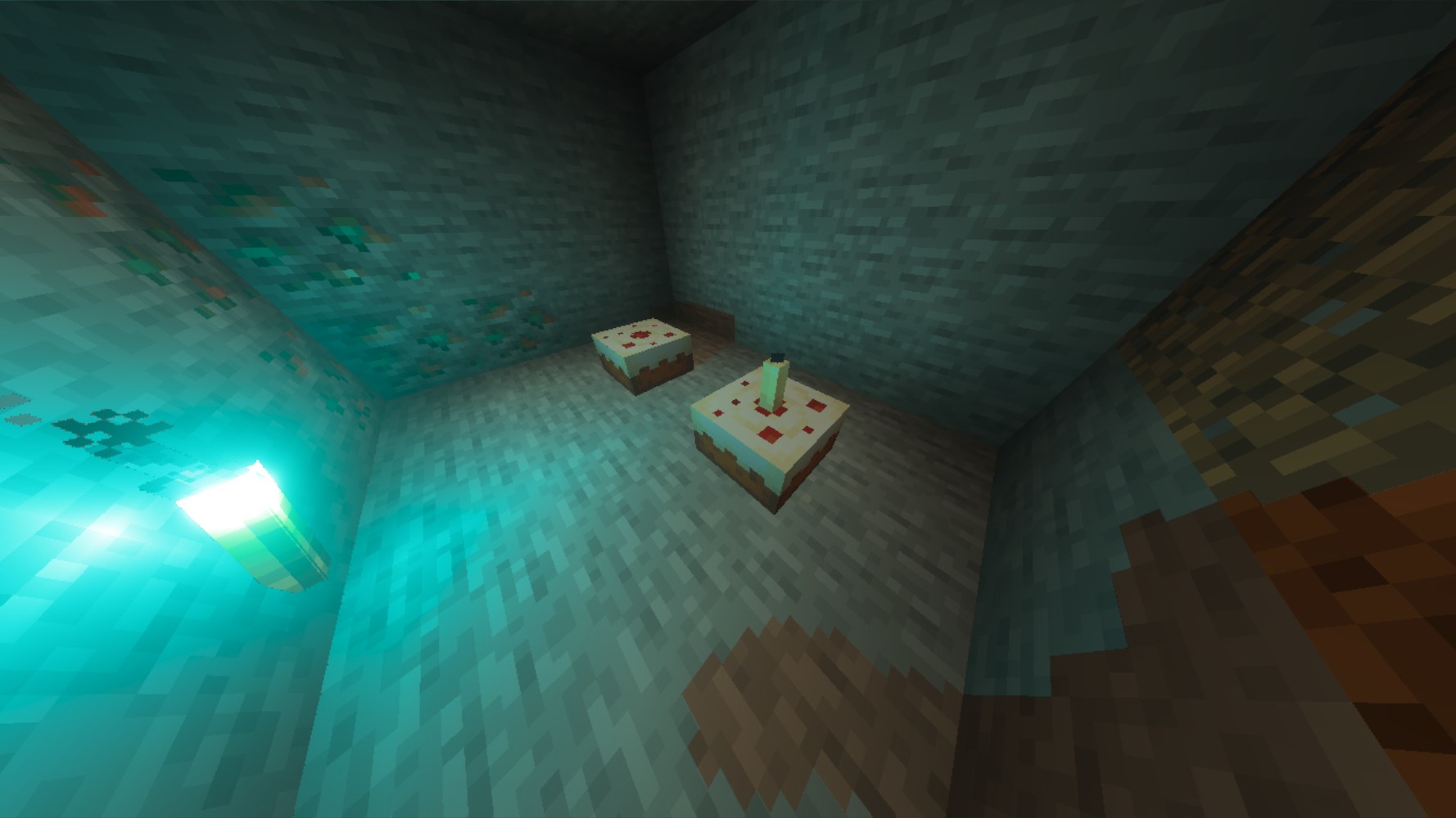 In a dark room with a torch, placing a cake on the ground does cast a shadow. However, putting a candle on it makes it not cast shadows. See attached screenshot.