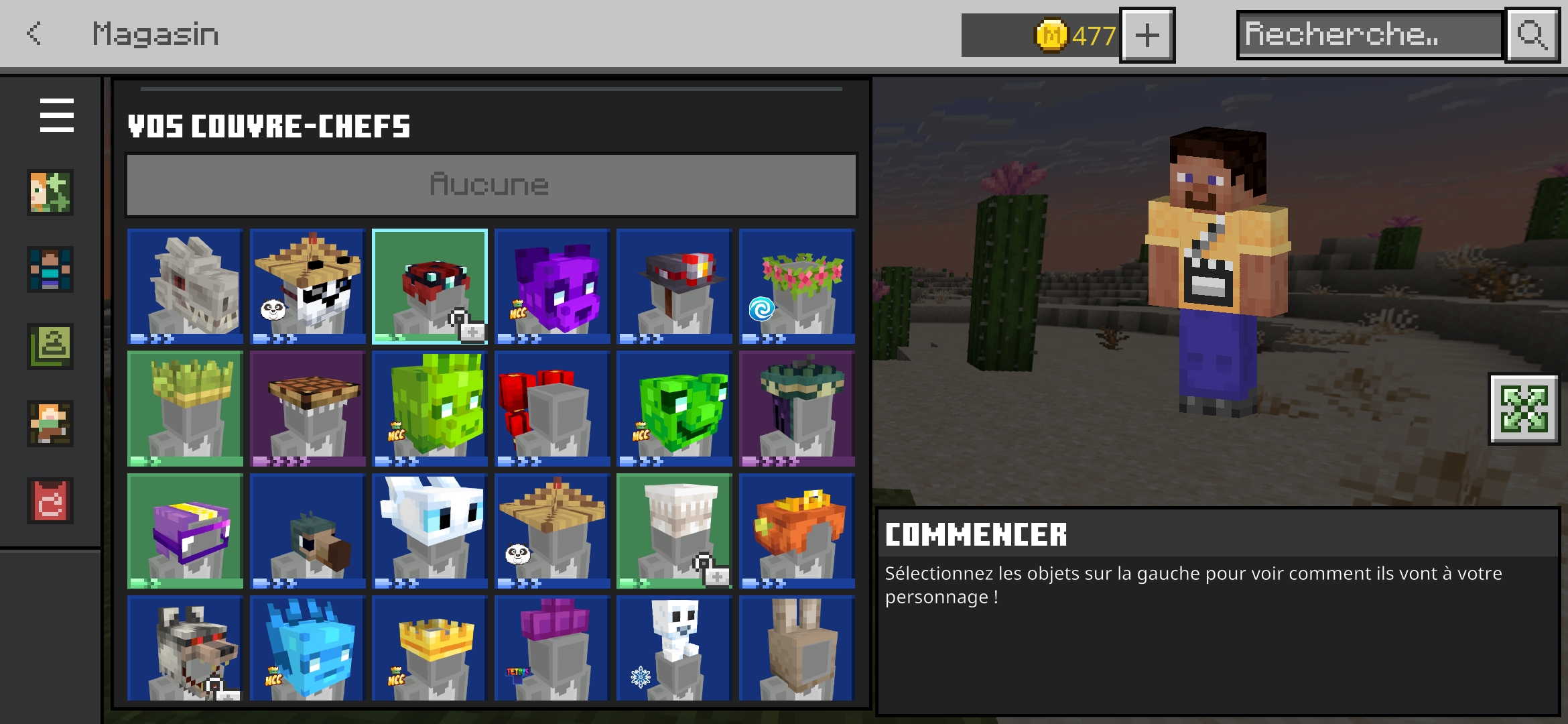 J'ai acheté des minecoins mais quand je vais dans le vestiaire, je ne trouve que la chemise mais pas le chapeau pop-corn. Pourriez vous régler ce problème s'il vous plaît
