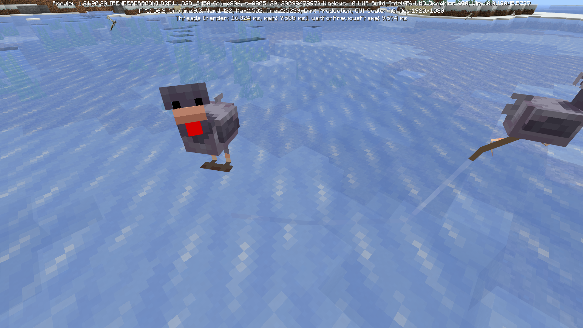 As I said in summary: attaching point of the lead is under the mob when another mob is attached. It's very visible when mobs are standing on the ice.