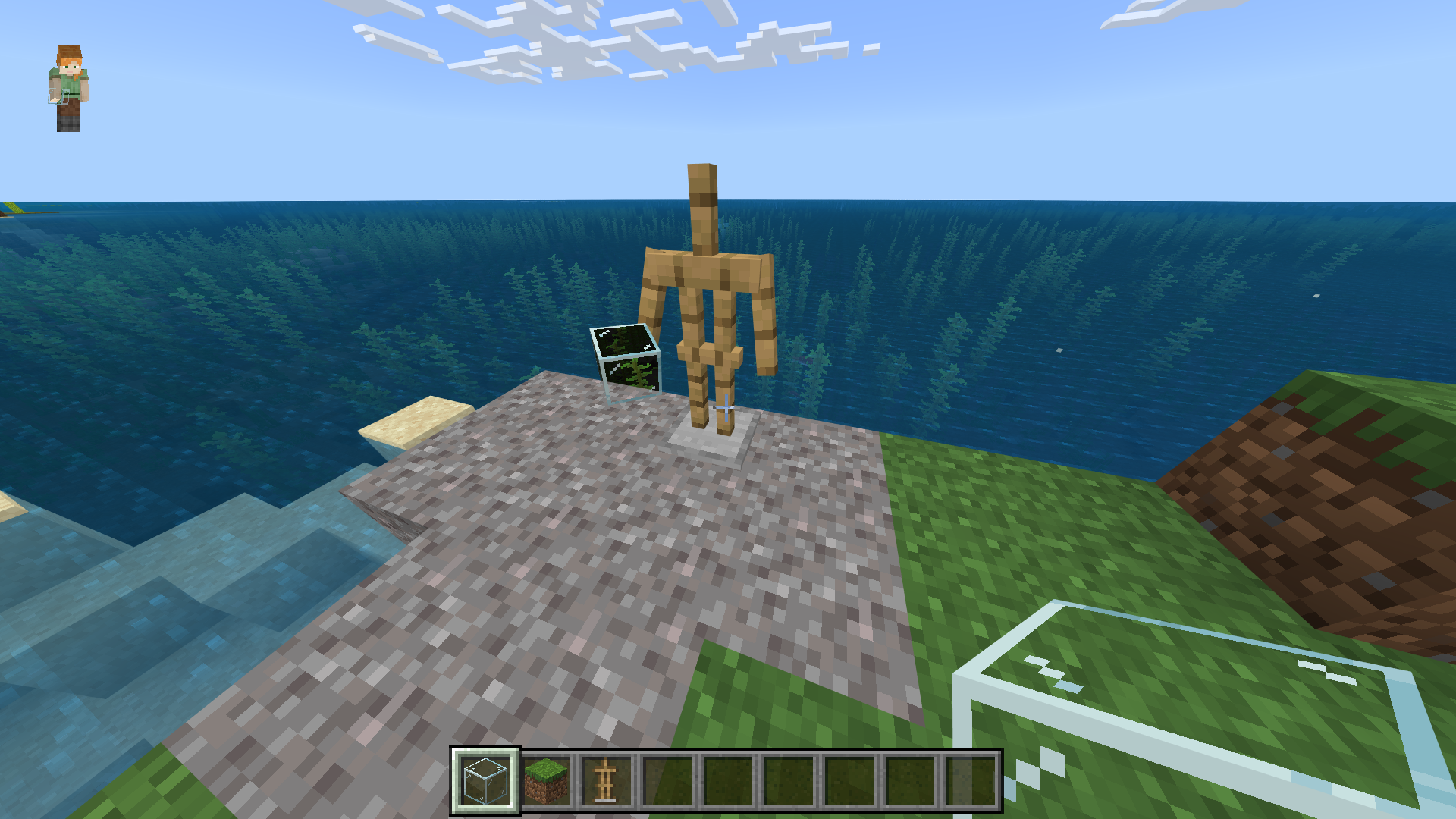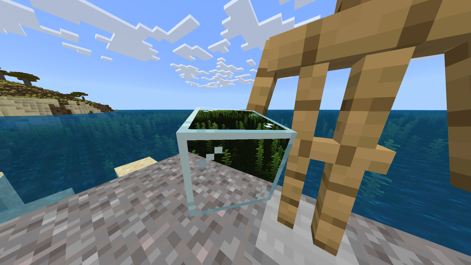 Hello, I am writing you about something I thing is a bug. When you are near water, when I make the armor stand to hold glass in his hand, trough the object looks like there is no water and we can see through the water and the same happens if you drop the item. Look for the screenshots below. Thanks!