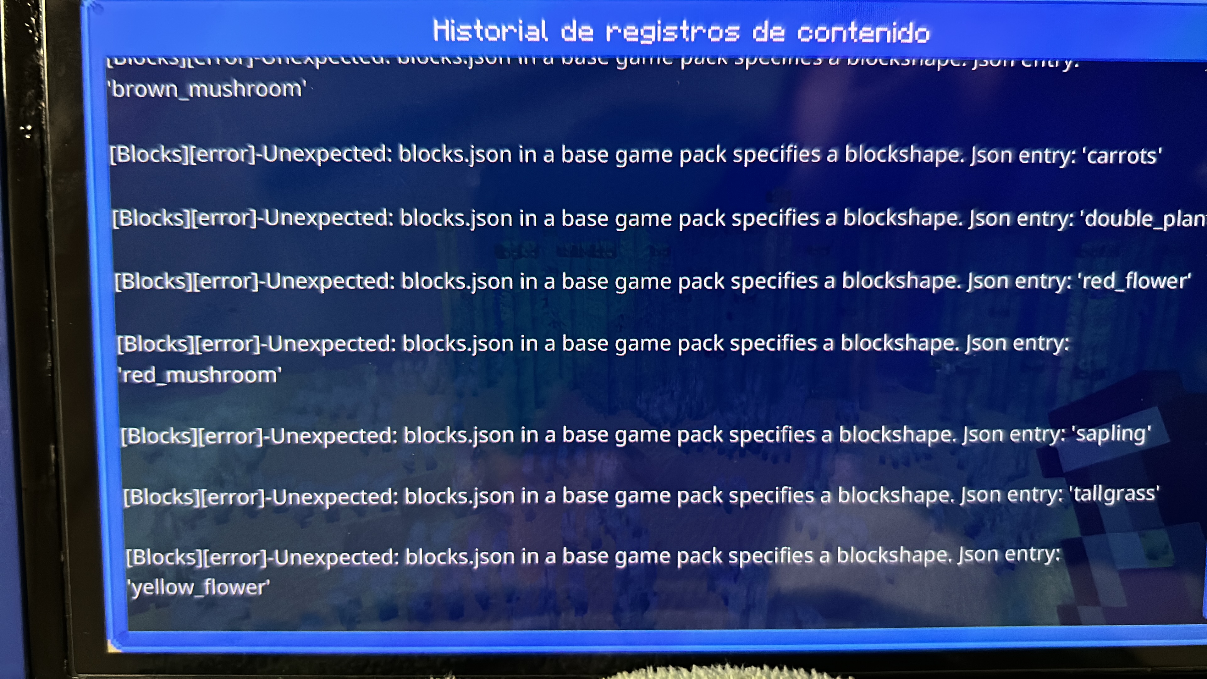 I am reaching out to report an issue related to the game Minecraft on Nintendo Switch.