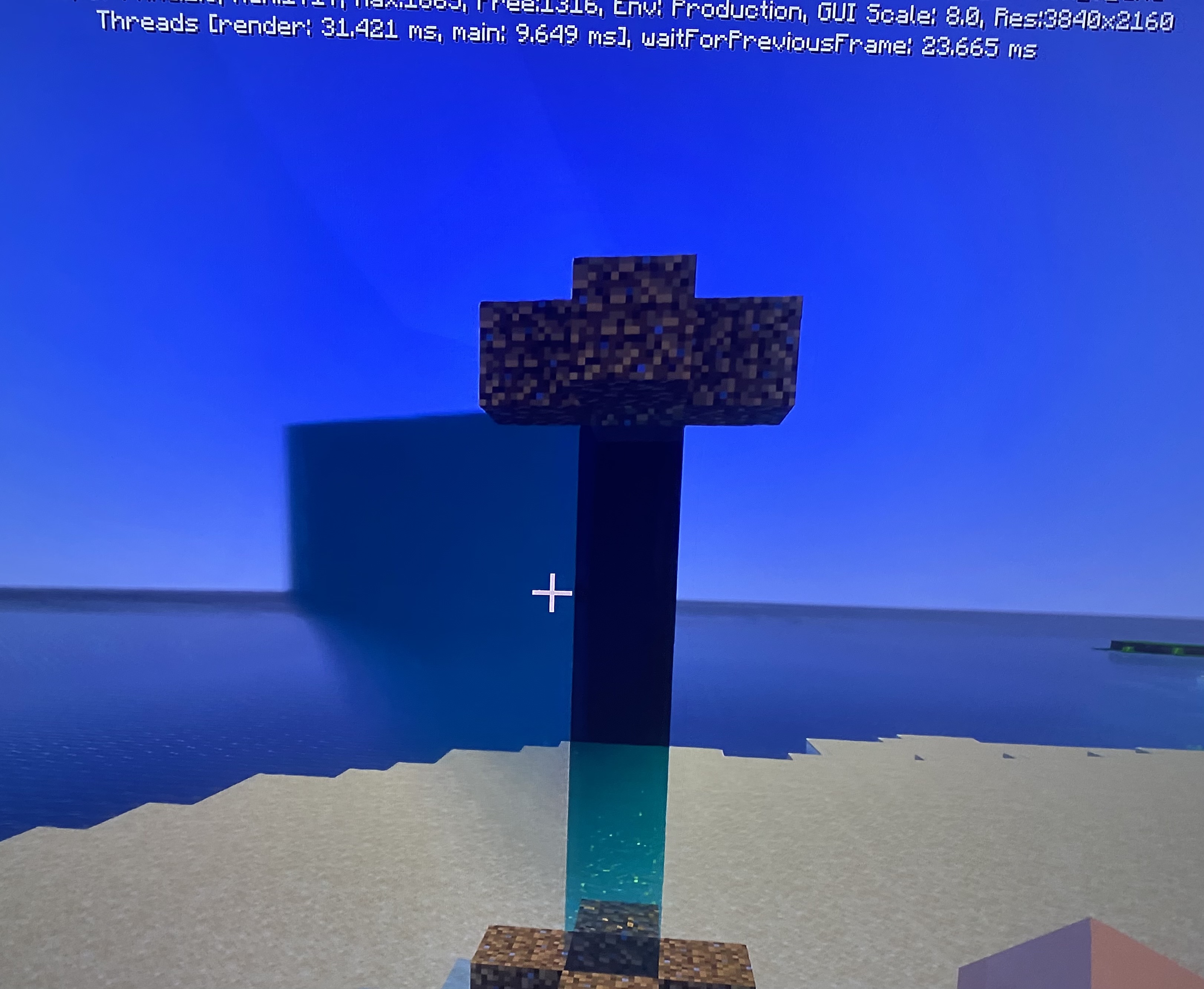 Water can create a dark green/dark blue misty effect in the air, when placed as a waterfall.