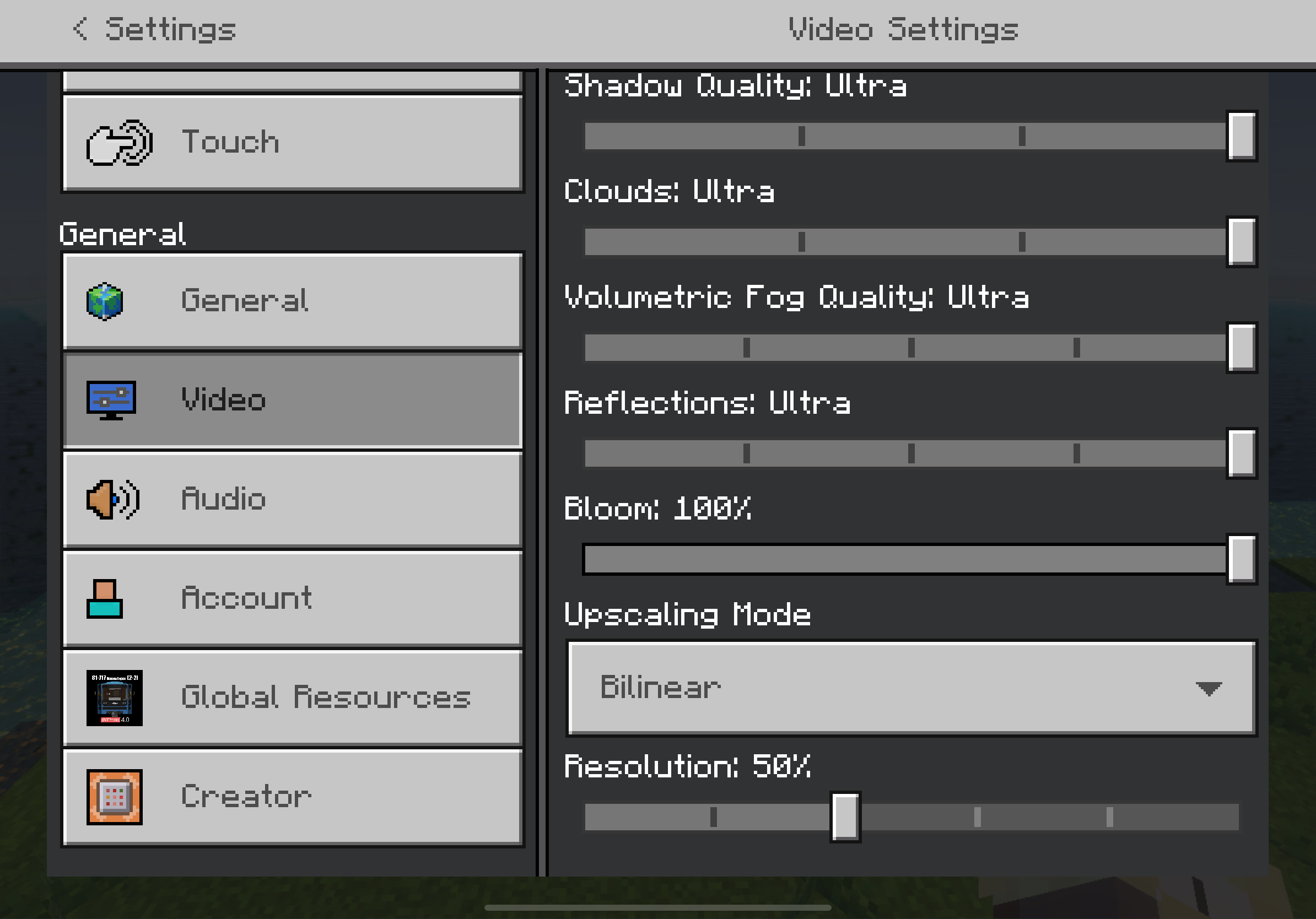 So, I was trying out new experimental feature vibrant visuals. I’ve tried changing settings since I have an M2 iPad Pro. And always when I change reflections to ultra, this happens. I don’t know if this is a hardware issue or vibrant visuals bug, but I think that it is not a hardware problem. I’ve tried changing some settings, like putting everything to low or everything to high, but it stays the same.