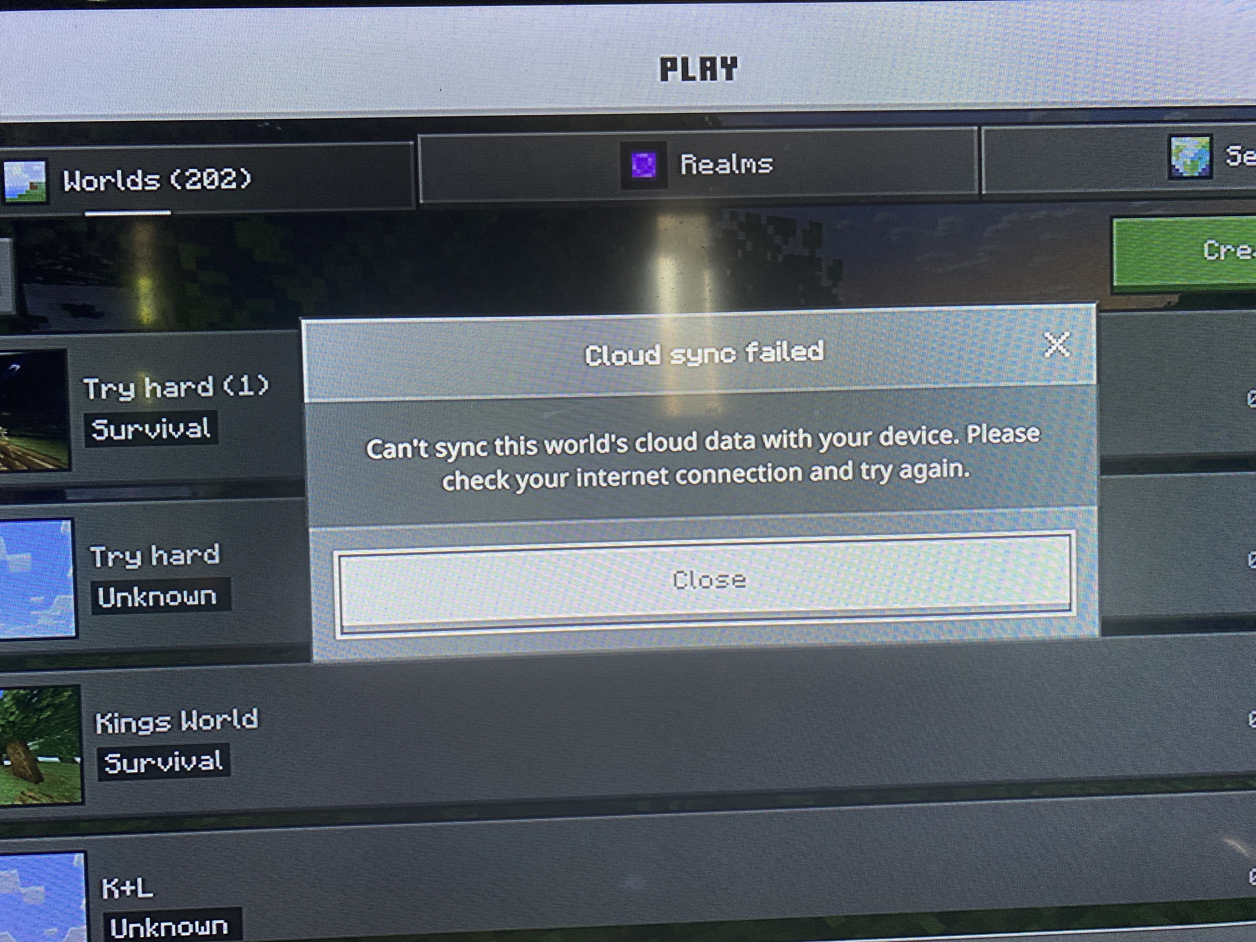 When I try to load into my world it doesn’t let me access it as it comes up with cloud sync failed and says I don’t have an internet connection when I have a working internet connection