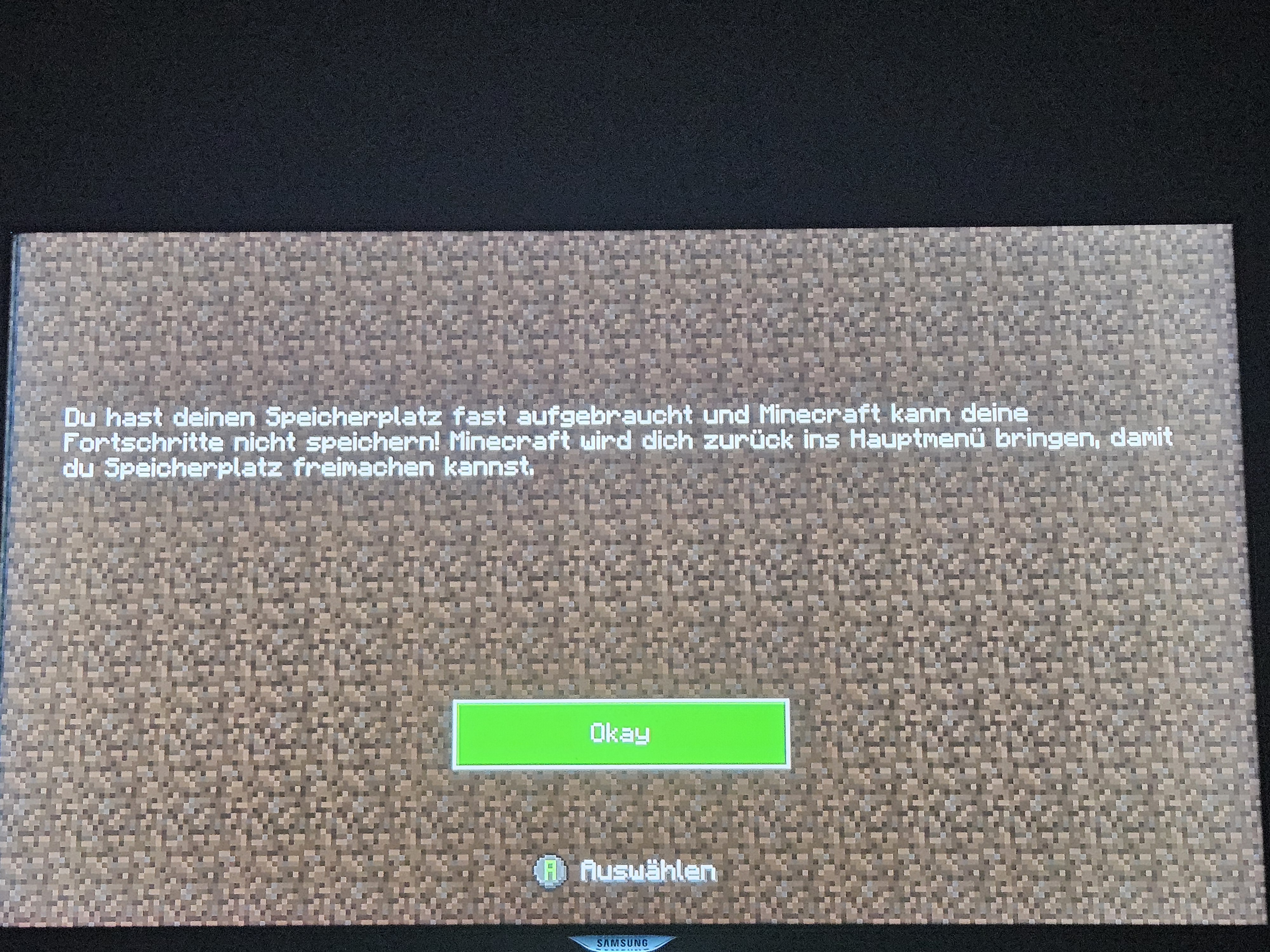 I can't join my world. Its German but it basically says i don't have any more storage and minecraft cant save my progress. Before that when i quit my world it says i should Delete worlds to free some storage but 1. I Deleted almost all of my worlds and 2. Minecraft is installed on my external hard drive.