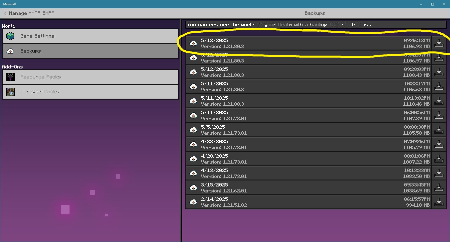 It doesn’t matter how I try, I cannot download my Realm Server Backup. I’m trying to activate Vibrant Visuals, but we can’t seem to do that on a Realm Server without downloading, activating, then uploading again. Major waste of time.