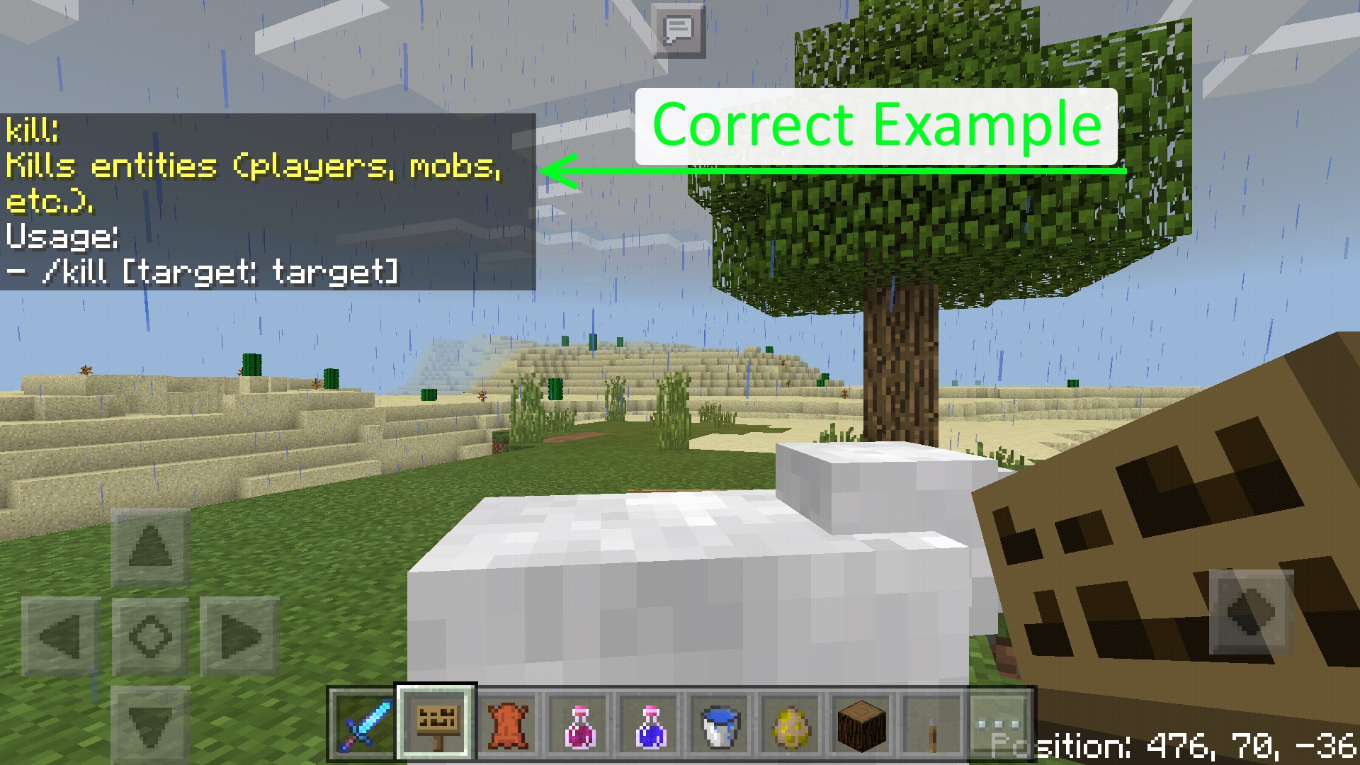 Various commands are missing their description in the Help section, because the description is missing from the .lang game file. These include: