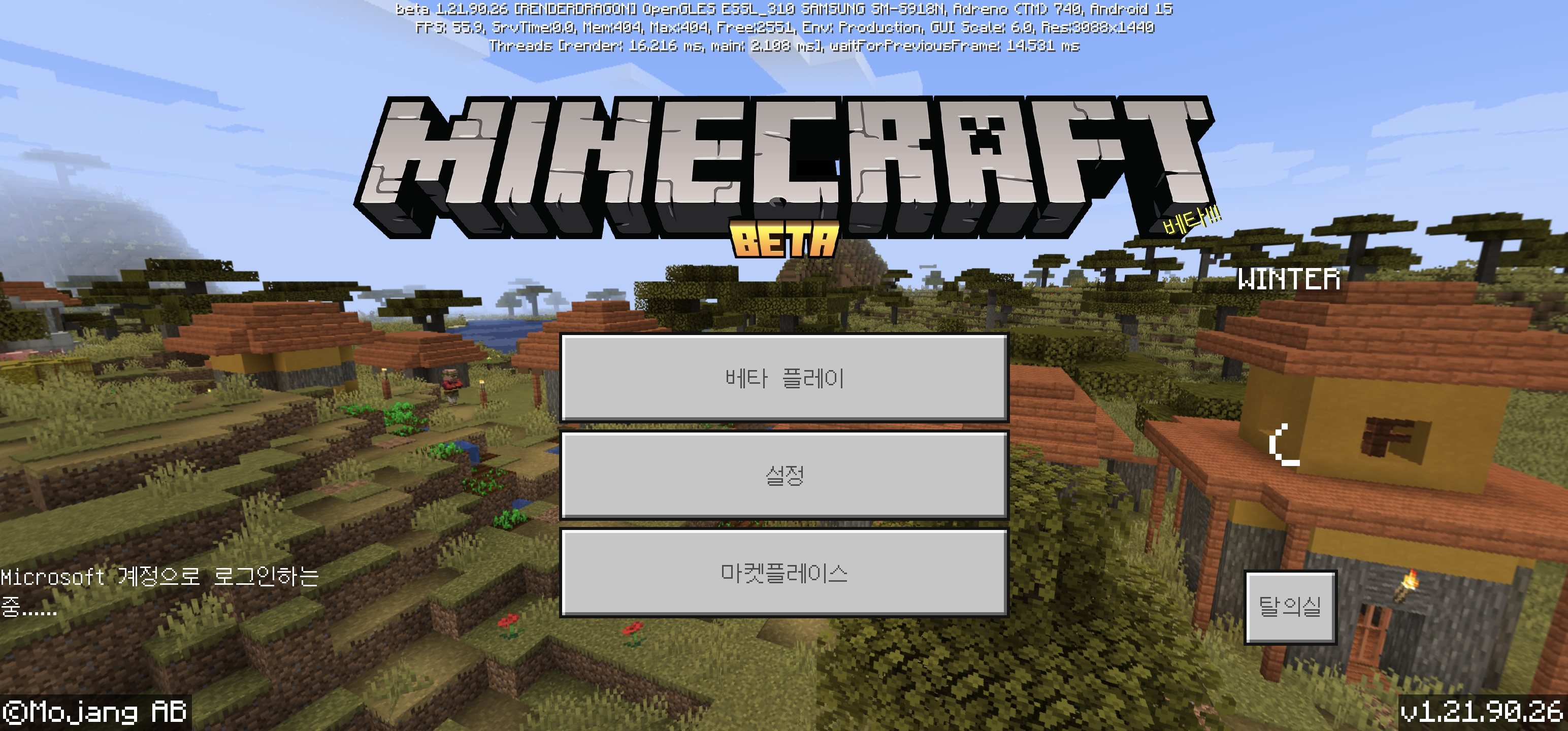 마인크래프트 앱을 누르면 첫번째 사진화면이됨