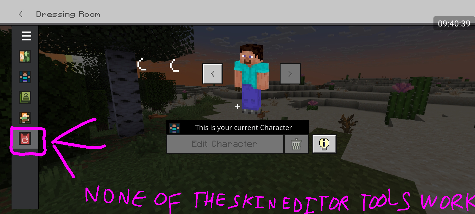 As shown in the images below, skins have been loading for a few minutes without a clear result, even newly created skins don't get the ability to be edited/modified.