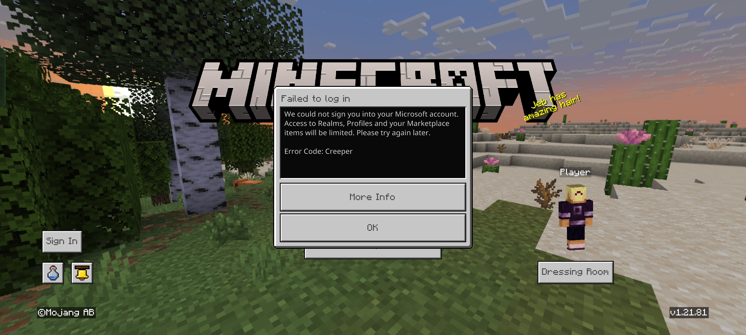 First of all I occurred when I tried to log in. I cannot log in my microsoft account and it is showing errorcode: creeper